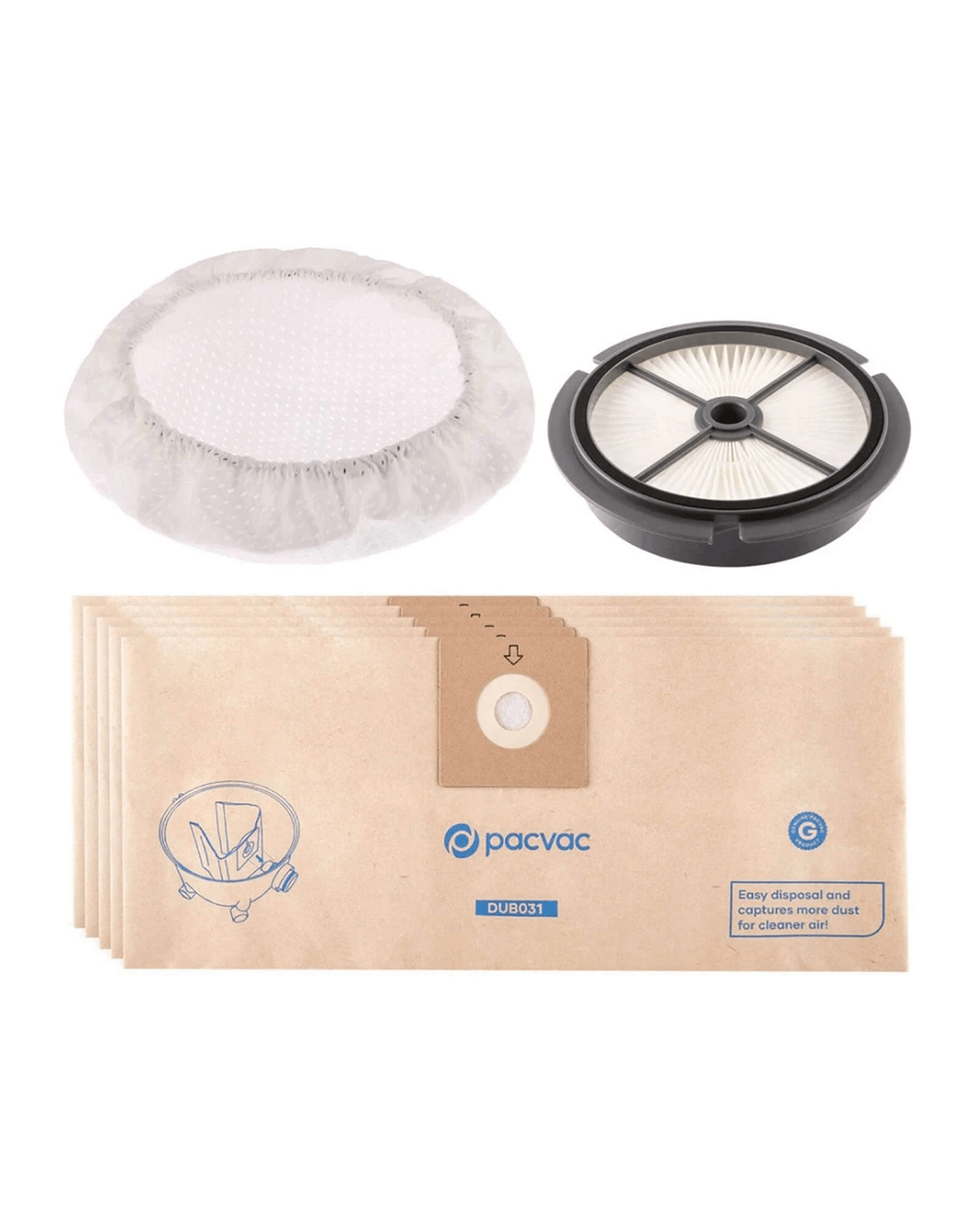 If your Pacvac Glide vacuum cleaner is due for some maintenance, this Service Kit is all you need to revive its performance. This kit, comprising genuine Pacvac parts, is designed to maintain the performance of your vacuum cleaner. Including a pack of 5 disposable dust bags, a synthetic filter cover, and a pre-motor HEPA rated filter, the Service Kit ensures efficient cleaning with optimal suction power. Notably, our filters are built to trap particles as small as 0.3 microns - providing you with an unbeatably clean and fresh environment. Designed exclusively for Pacvac vacuum models Glide 300 and Glide Wispa 300, this service kit provides the necessary parts to maintain your vacuum's performance and extend its lifespan, ensuring consistently high cleaning results.