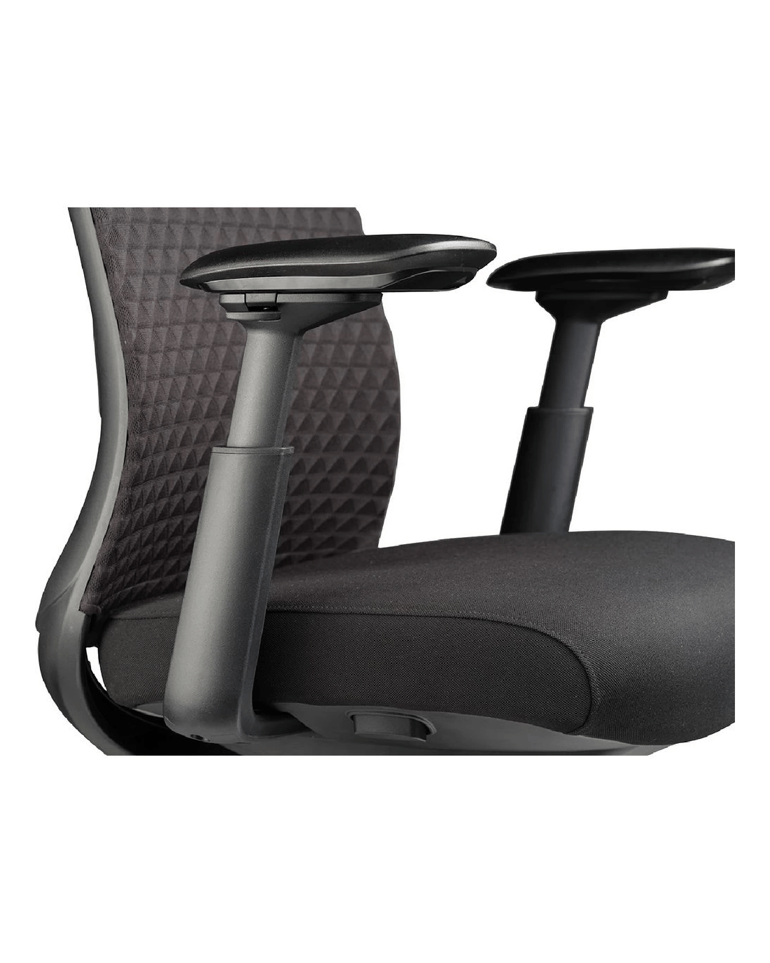 - 4D adjustable arms for closer desk access and wrist support.