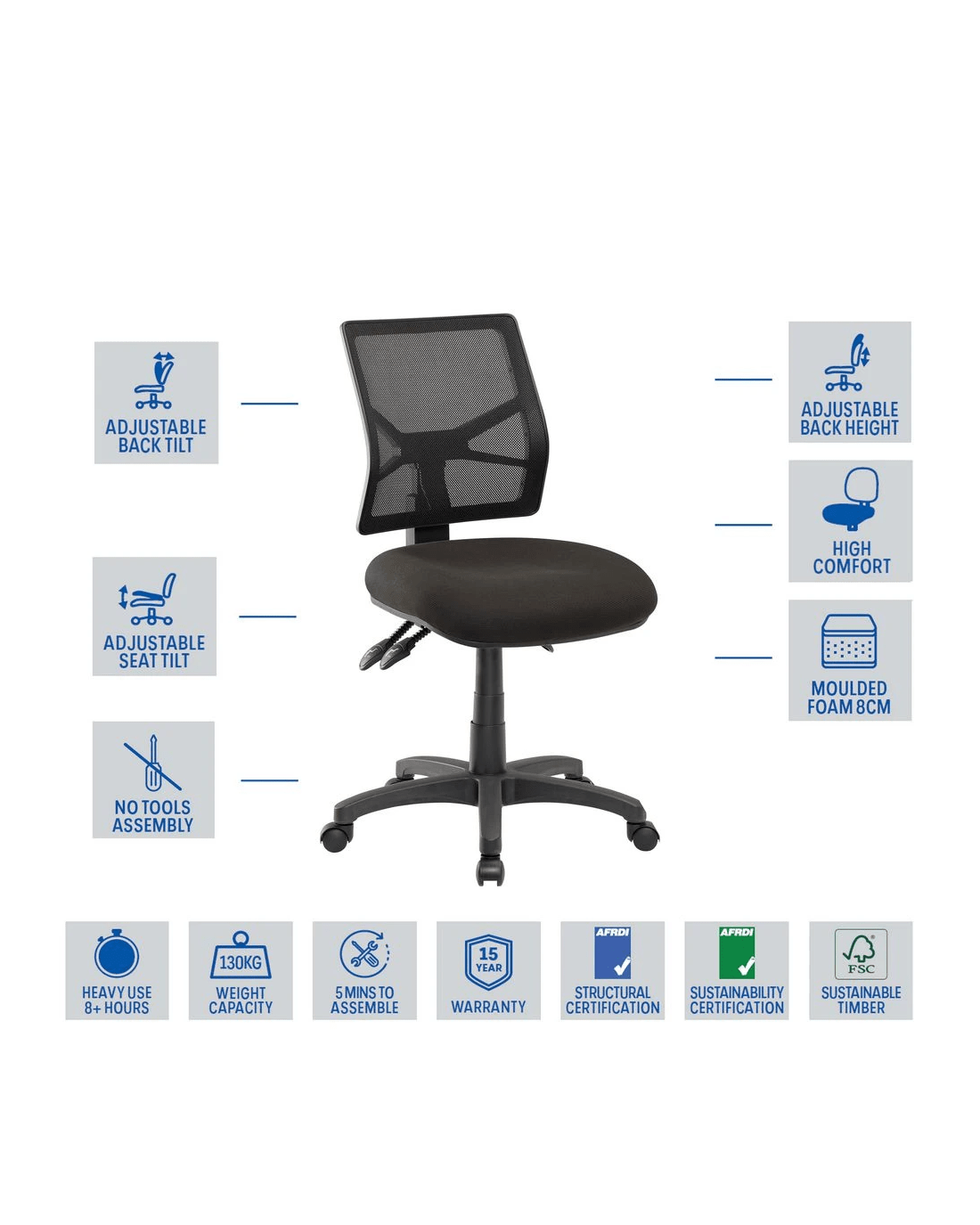 - This chair has both the AFRDI Blue Tick Product Certification, and AFRDI Green Tick Product Certification.