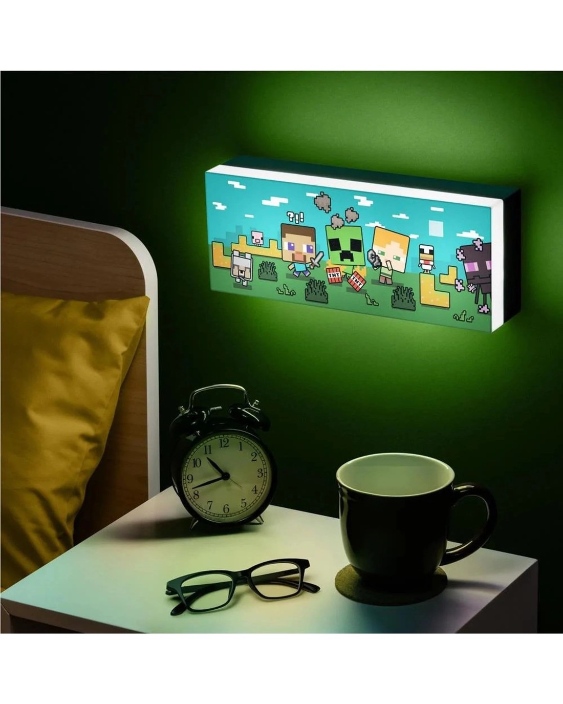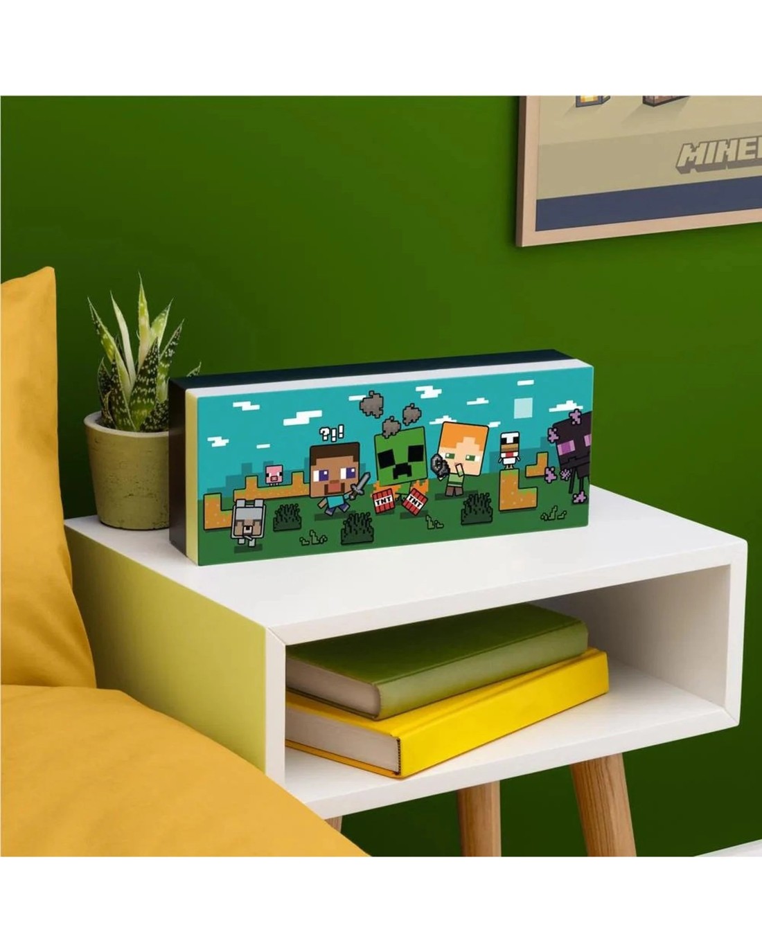 Light up your bedroom with this Minecraft Character Light. This colourful light features two light settings to choose from - phase on and light pulsing mode. The 30cm wide wall-mountable light perfectly captures the vibrant scenery of the game. It includes designs of the popular characters Steve and Alex, as well as various peaceful (and not so peaceful) mobs. Power your light with the USB cable (included) or 3x AAA batteries (not included). The Minecraft Character Light is great for adding a little fun to any room. Ages 6 +
