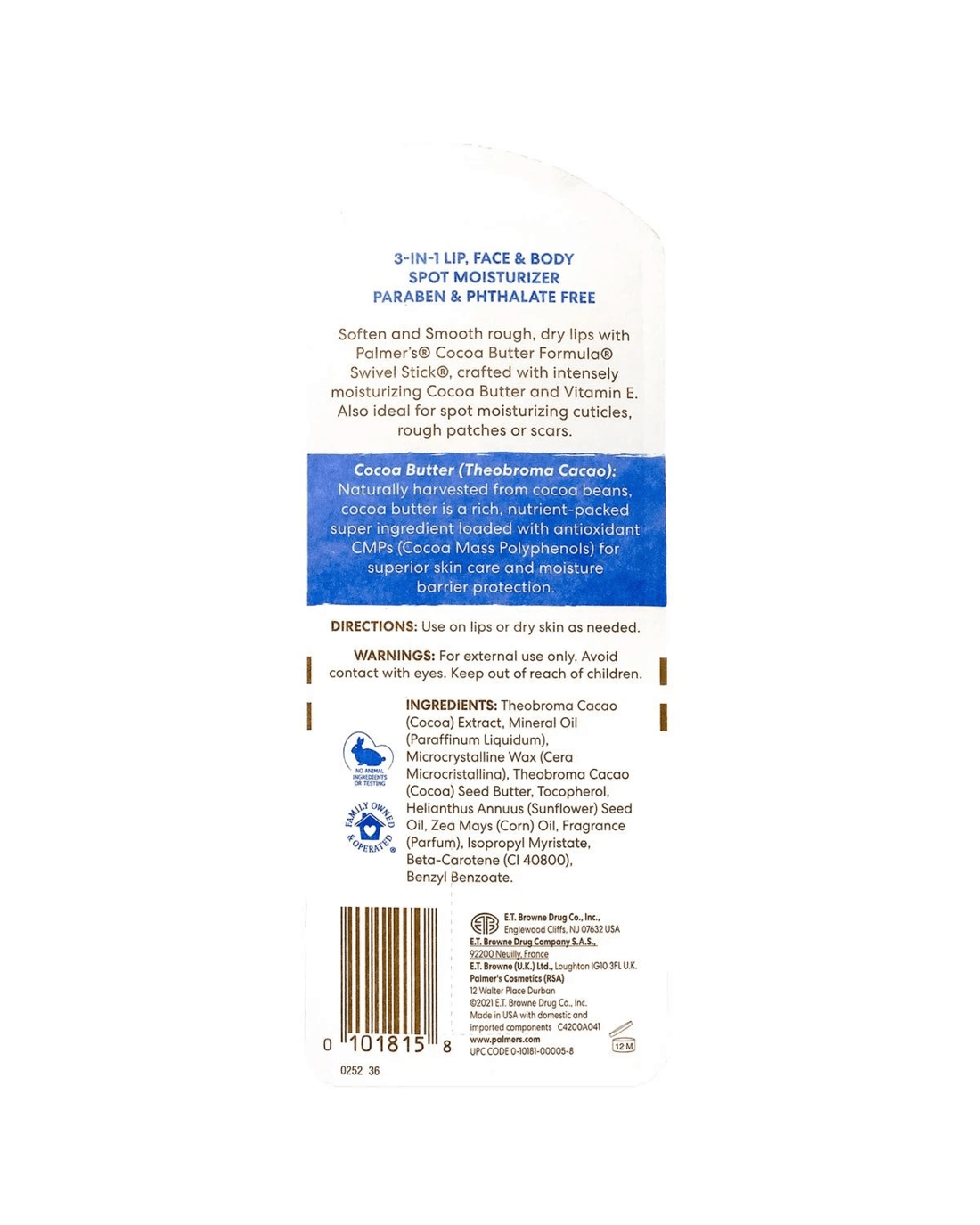 Experience soft, nourished lips and skin throughout the day with Palmer's Cocoa Butter Swivel Stick. Infused with rich cocoa butter and vitamin E, this handy stick melts smoothly onto your lips, instantly relieves dryness, and leaves you feeling comfortable. Its portable size makes it brilliant for slipping into your bag, letting you refresh your lips, cuticles, or any dry patches whenever you need it. Whether you’re braving chilly winds or just need a daily boost of moisture, this multitasking wonder quickly restores softness and keeps you smiling with confidence. Discover the difference for yourself and add this beauty essential to your routine today.
