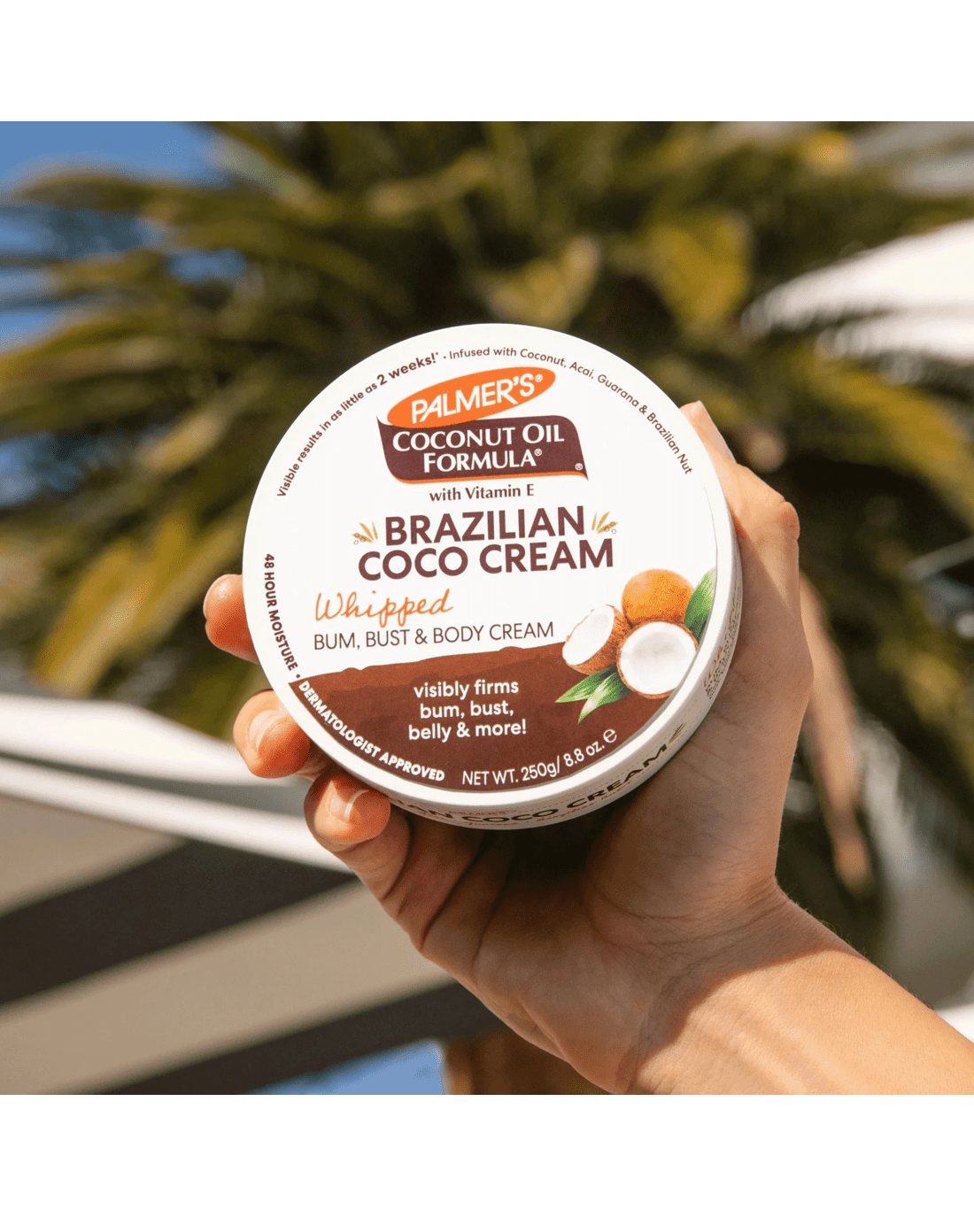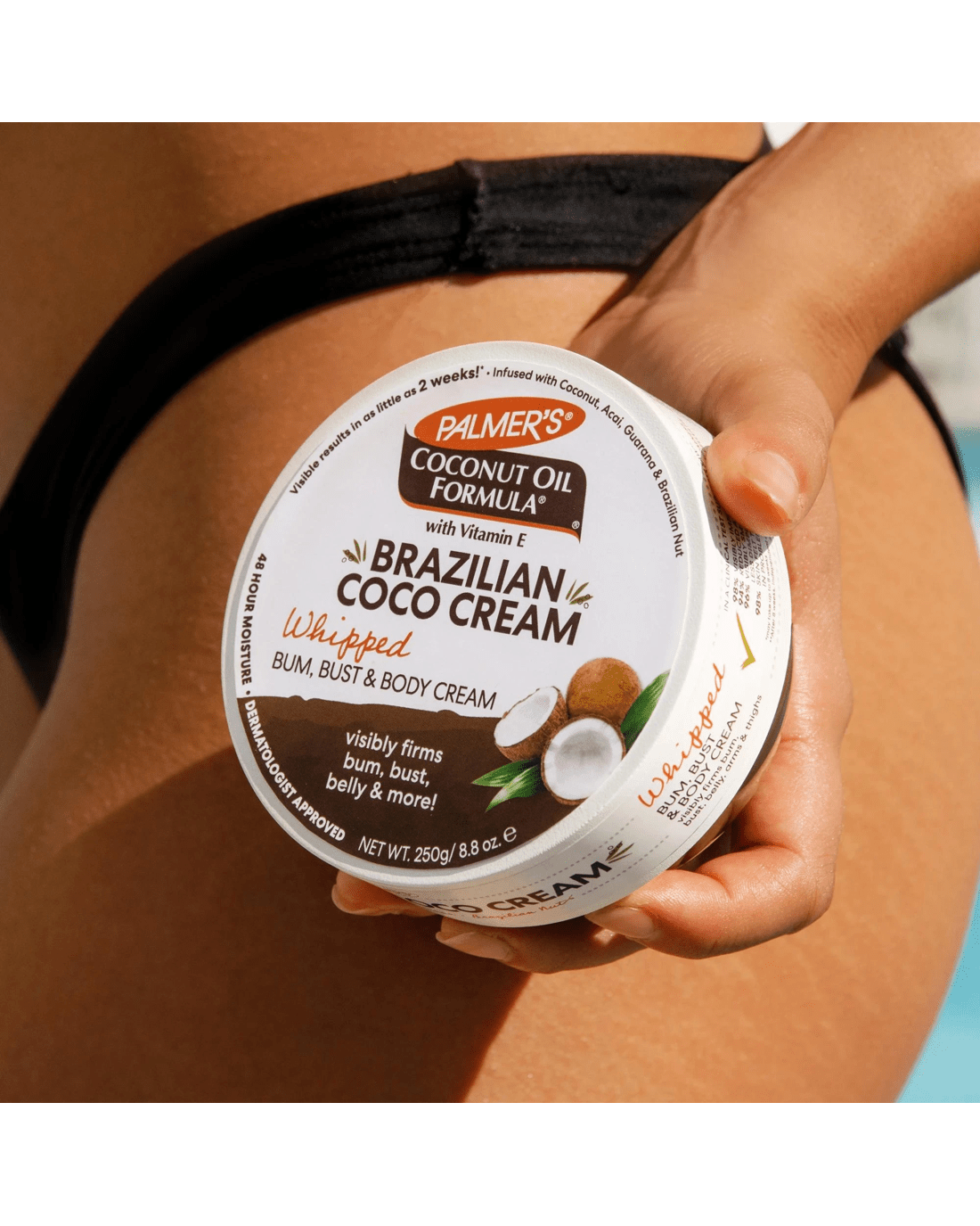 Experience silky smooth skin and renewed confidence with Palmers Coconut Oil Formula Brazilian Coco Whipped Bum, Bust and Body Cream. Packed with coconut oil, guarana and açai, this rich body cream helps nourish your skin while enhancing the look of your curves. The whipped texture glides on effortlessly, melting in to leave your skin soft, supple and beautifully scented with a hint of the tropics. It’s ideal for treating areas in need of extra care, firming and smoothing as you pamper yourself daily. Give your skin the boost it deserves by making this indulgent cream a part of your everyday self-care. Try it out and embrace skin that looks and feels wonderfully cared for!