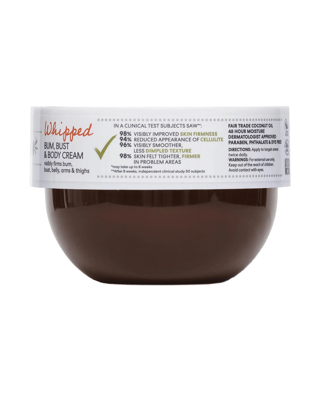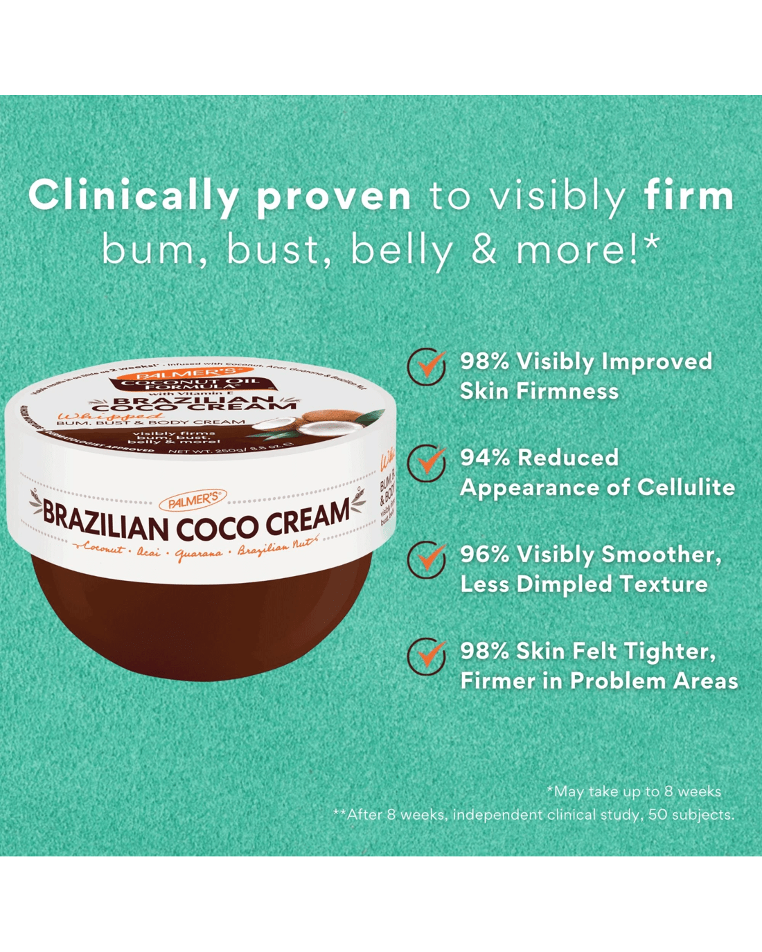 - In a clinical test subjects saw*: 98% visibly improved skin firmness, 94% reduced appearance of cellulite, 96% visibly smoother less dimpled texture, 98% skin felt tighter, firmer in problem area