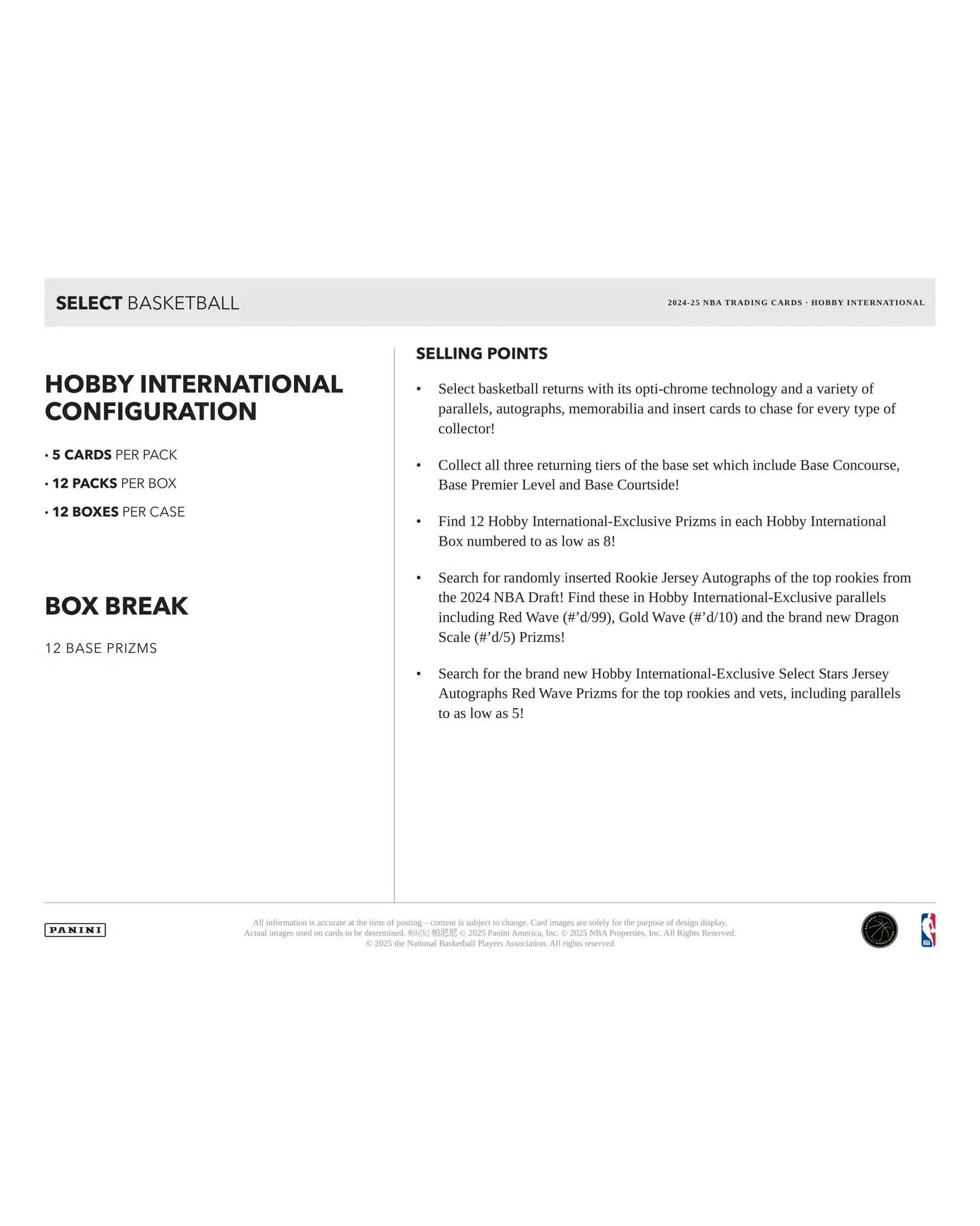 Panini 2024 / 2025 NBA Select Basketball International Hobby Pack