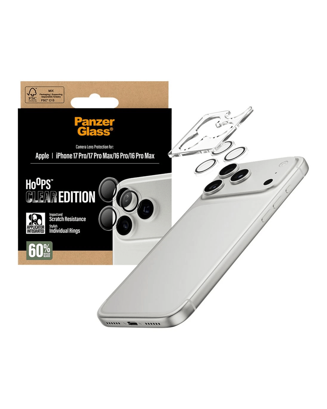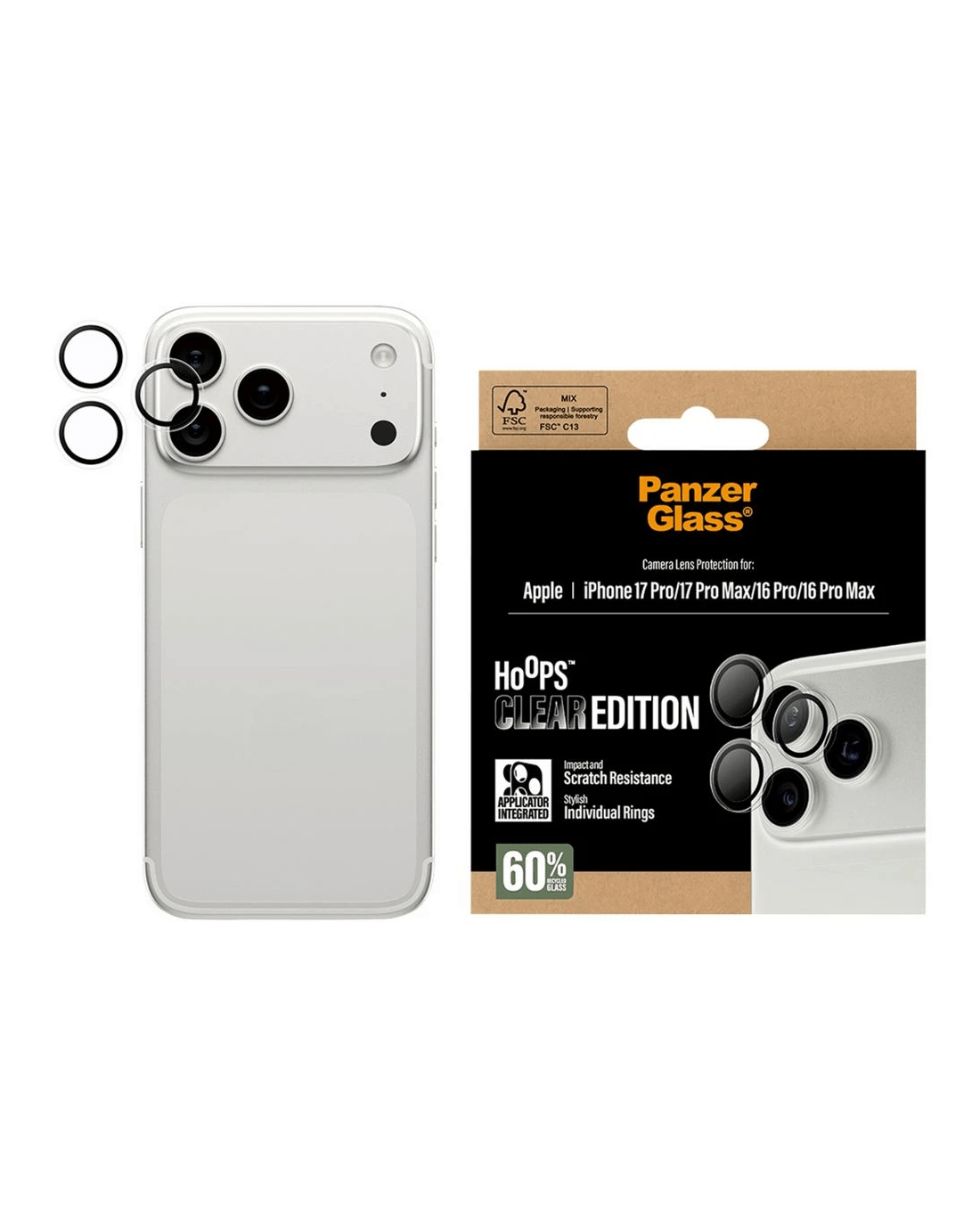 This PanzerGlass Hoops Camera Lens Protector offers slim, stylish protection for your phone’s camera lenses. With a clear frame that lets your phone’s colour shine through, it features scratch- and shock-resistant glass and a durable metal ring for everyday defence. Easy to apply and built to last, it helps extend your device’s life without compromising photo quality.