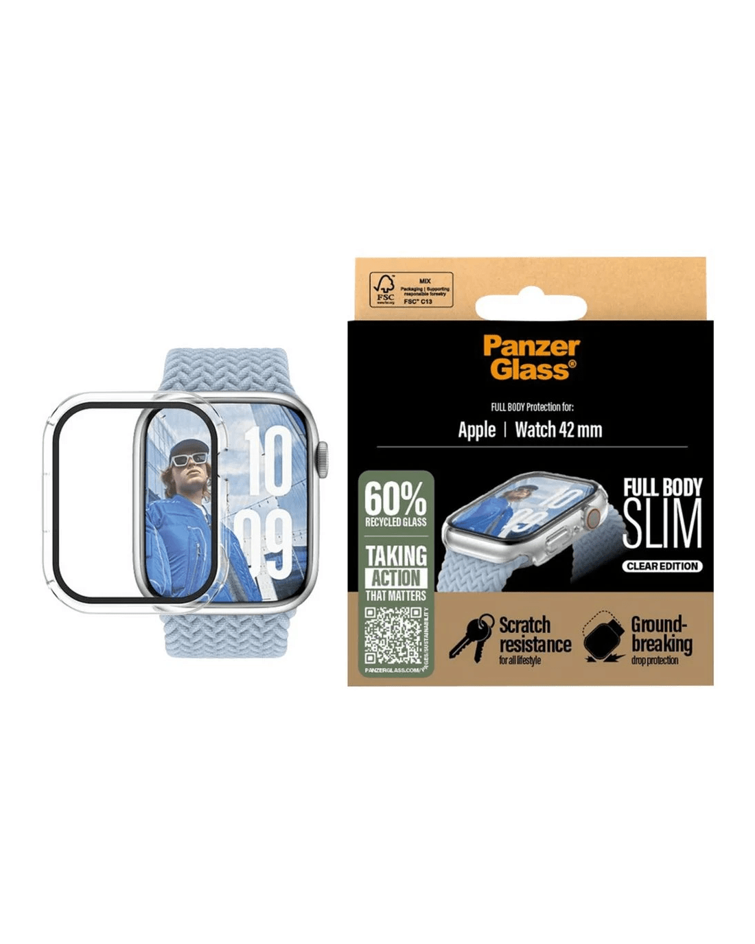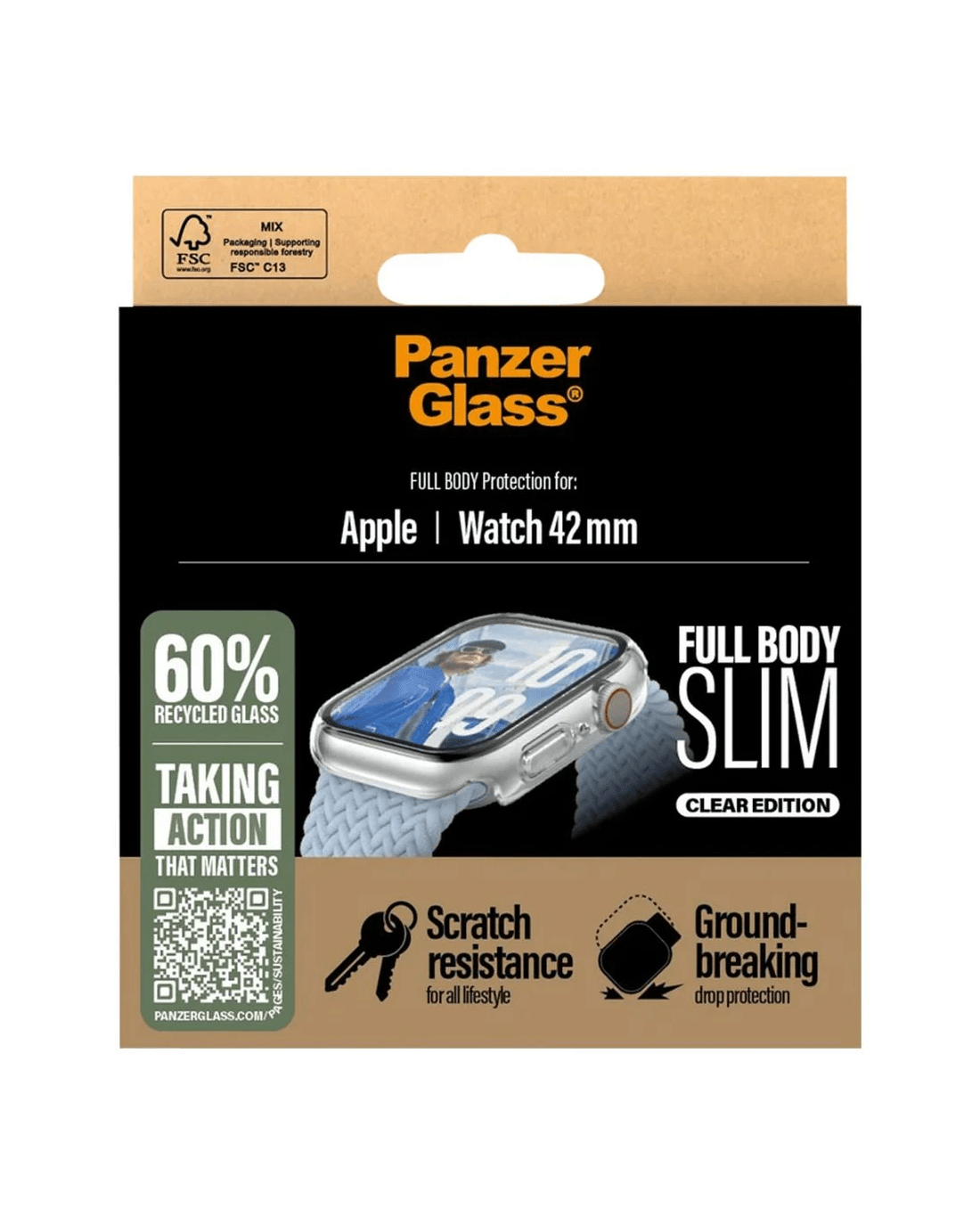 This PanzerGlass Snappie Full Body Screen and Watch Protector provides tougher than tough protection for your Apple Watch, keeping it safe on any adventure. The full-body protection is slim yet robust, protecting and prolonging the lifetime of your watch, covering the entire front as well as the curved sides of your watch, while still providing easy access to all controls. It has been drop-tested under 1 x Military Grade Standard conditions, which means it can withstand several drops from a height of 1.2 meters.