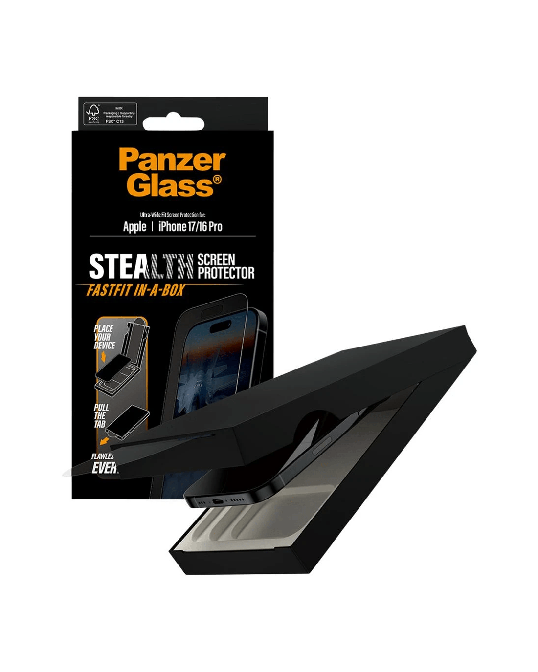 This PanzerGlass Stealth Screen Protector offers invisible, military-inspired protection with a flawless installation experience. It features Mohs 6 hardness, anti-reflective coating, and anti-fingerprint technology for clear, durable screen coverage. Plus, with the FastFit In-a-Box system, applying your screen protector is quick, clean, and perfectly aligned every time.
