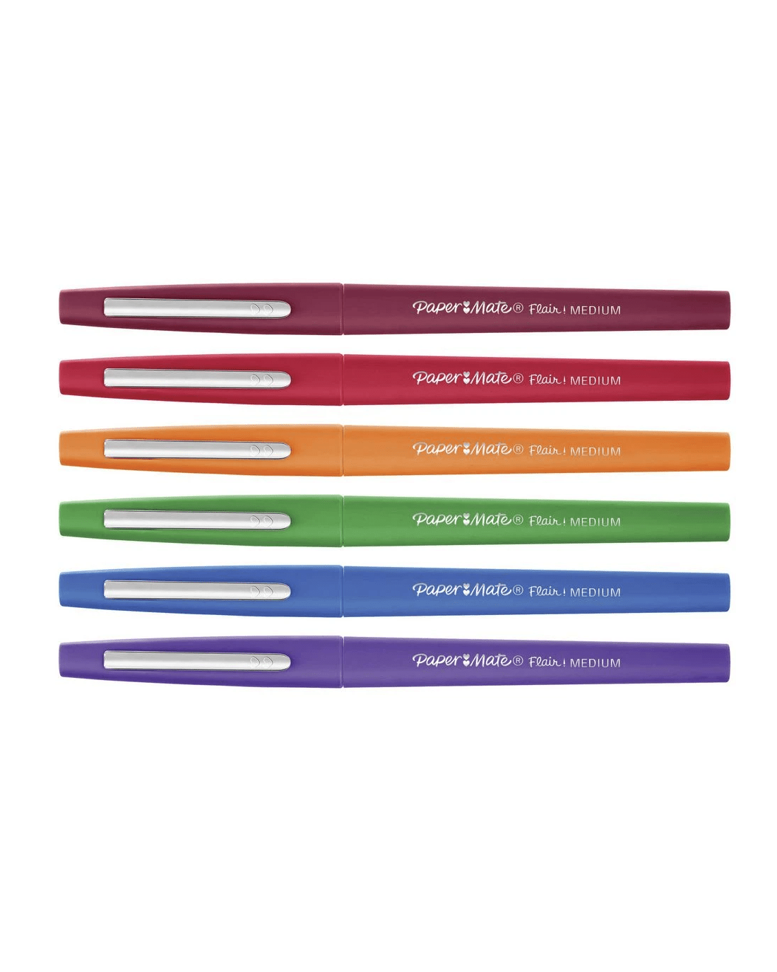 These Paper Mate Flair Medium Fineliners have a 0.7mm tip that produces vivid lines that won't smear, fade or bleed through the paper. Each pen has a Point Guard to prevent tip fraying and keep you writing and drawing as long as your inspiration lasts, and they come with a handy pocket clip. so you can keep them close when you're not using them.