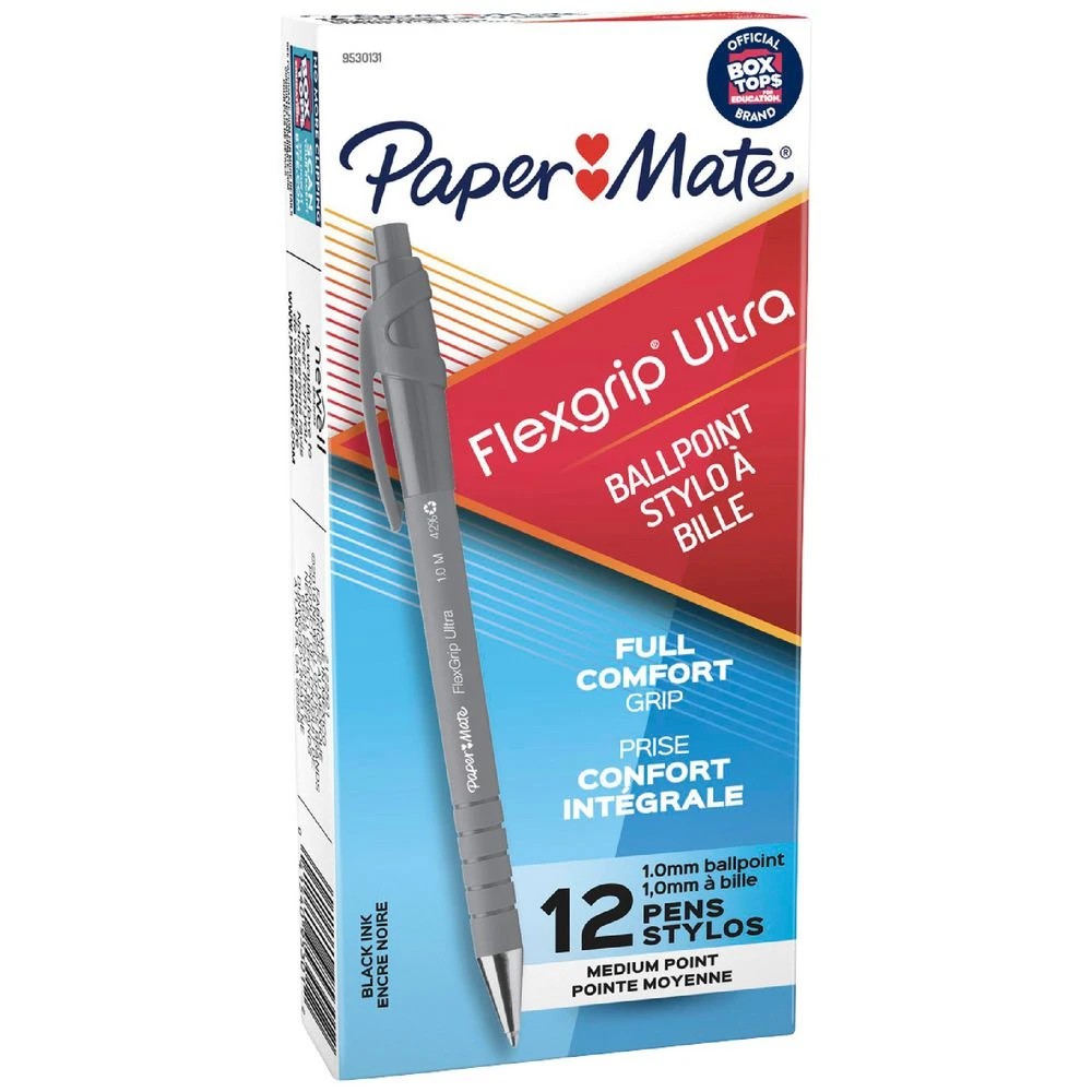 Paper Mate FlexGrip Ultra Retractable Pens Black 12 Pack