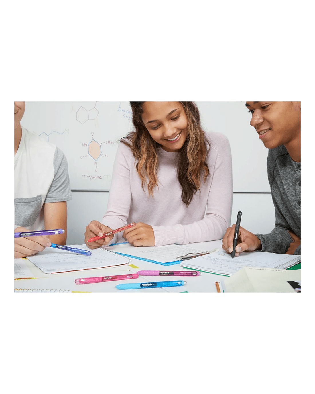 - This pack contains pens that write in an assorted range of colours.
