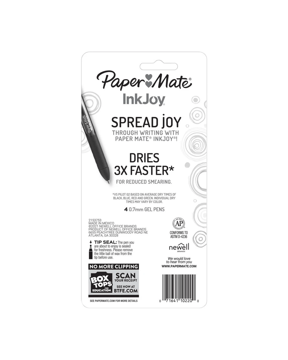 Spread joy and not smears with these Paper Mate InkJoy Gel Pens. The vivid gel ink dries fast for reduced smearing. Plus, they are fully wrapped with a comfort grip and have a smooth style that keeps the joy flowing as fast as your thoughts.