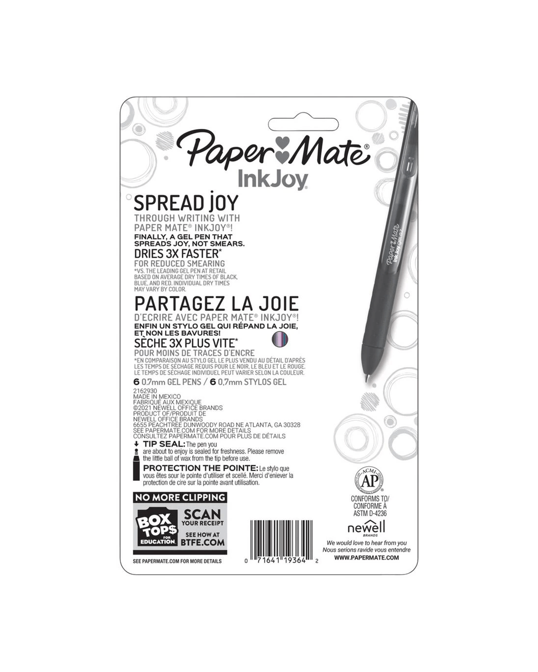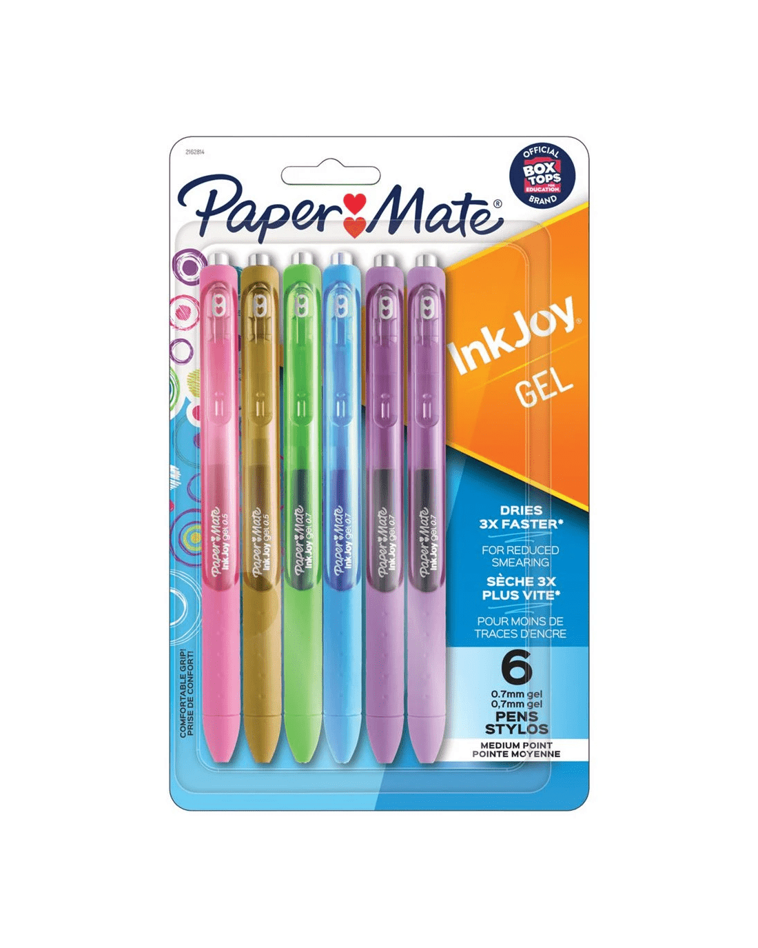 Spread joy and not smears with these Paper Mate InkJoy Gel Pens. The vivid gel ink dries fast for reduced smearing. Plus, they are fully wrapped with a comfort grip and have a smooth style that keeps the joy flowing as fast as your thoughts.
