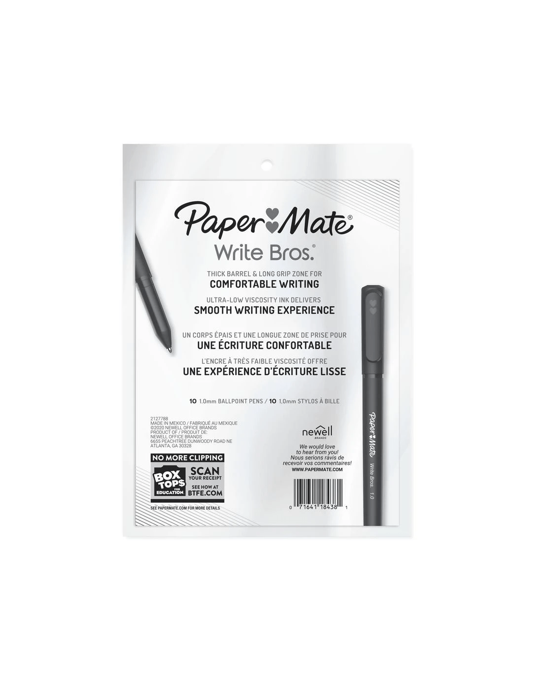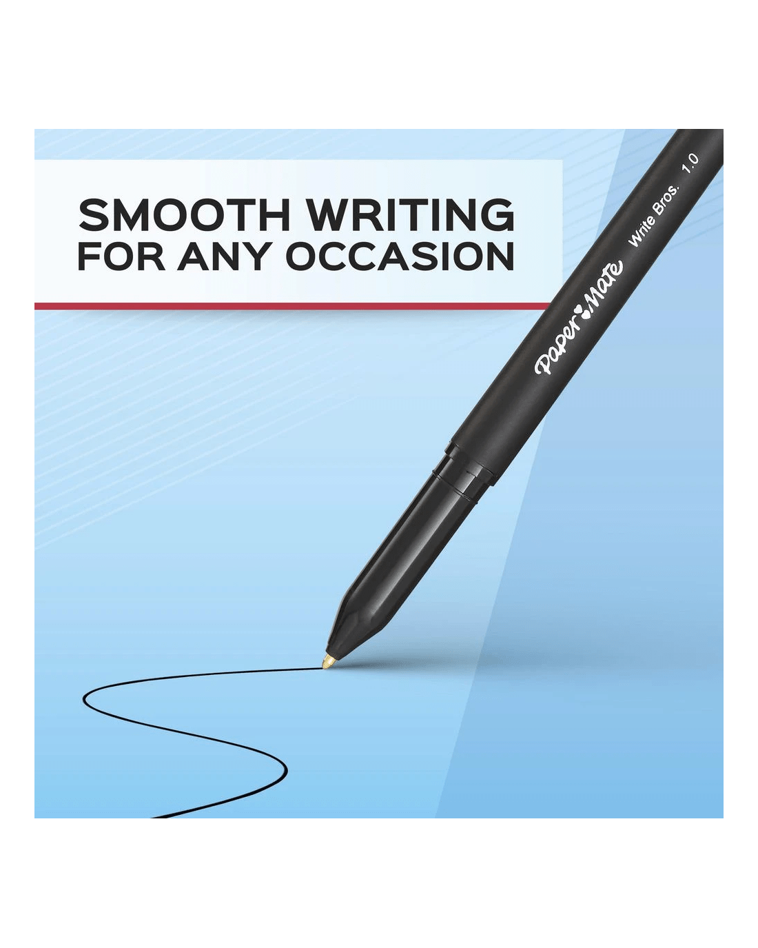 These Paper Mate Write Bros Ballpoint Pens deliver smooth, crisp lines and a long grip zone for comfortable writing. The ultra-low viscosity ink allows you to glide across the page while the 1.0 mm nib creates bold lines.