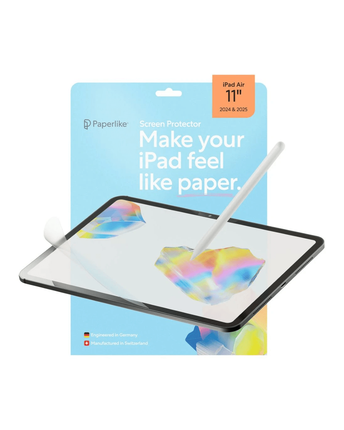 This Paperlike Screen Protector transforms your iPad into a paper-like writing surface for improved precision and control. The ultra-thin design with Nanodots® technology reduces glare while protecting your screen from scratches and smudges. Plus, each pack includes two protectors so you’ll always have a spare ready.