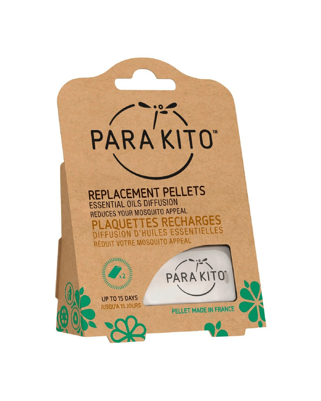 These Para'kito Mosquito Protectant Replacement Pellets are suitable for use in your Para'kito Band or Clip to deter mosquitoes. Each pellet contains a blend of essential oils which interfere with a mosquito's sense of smell.