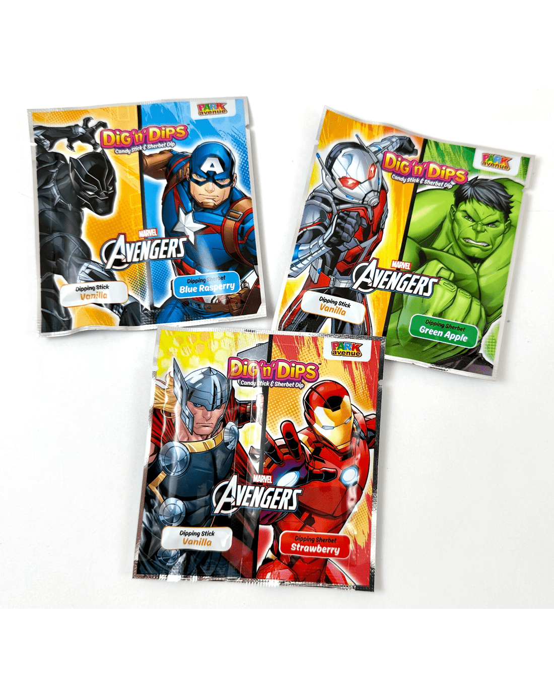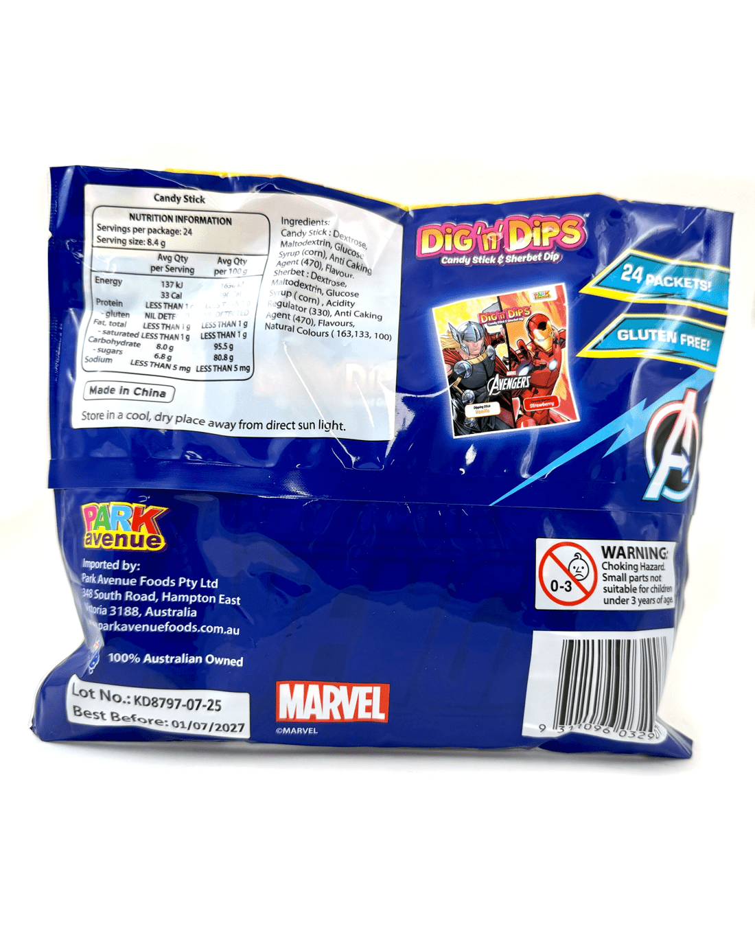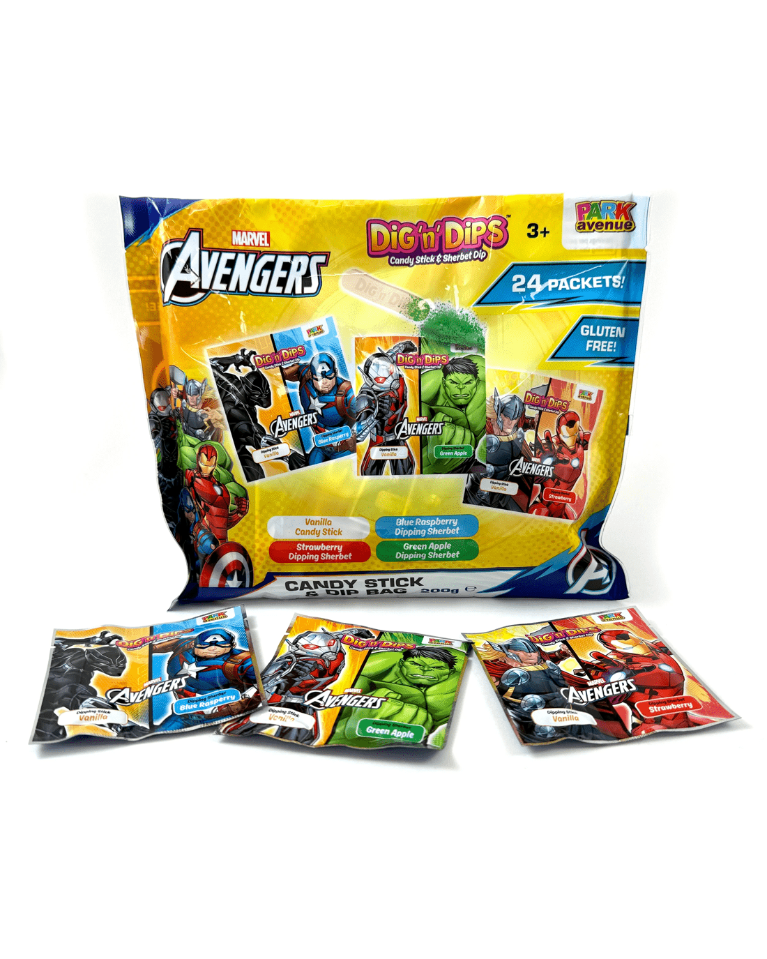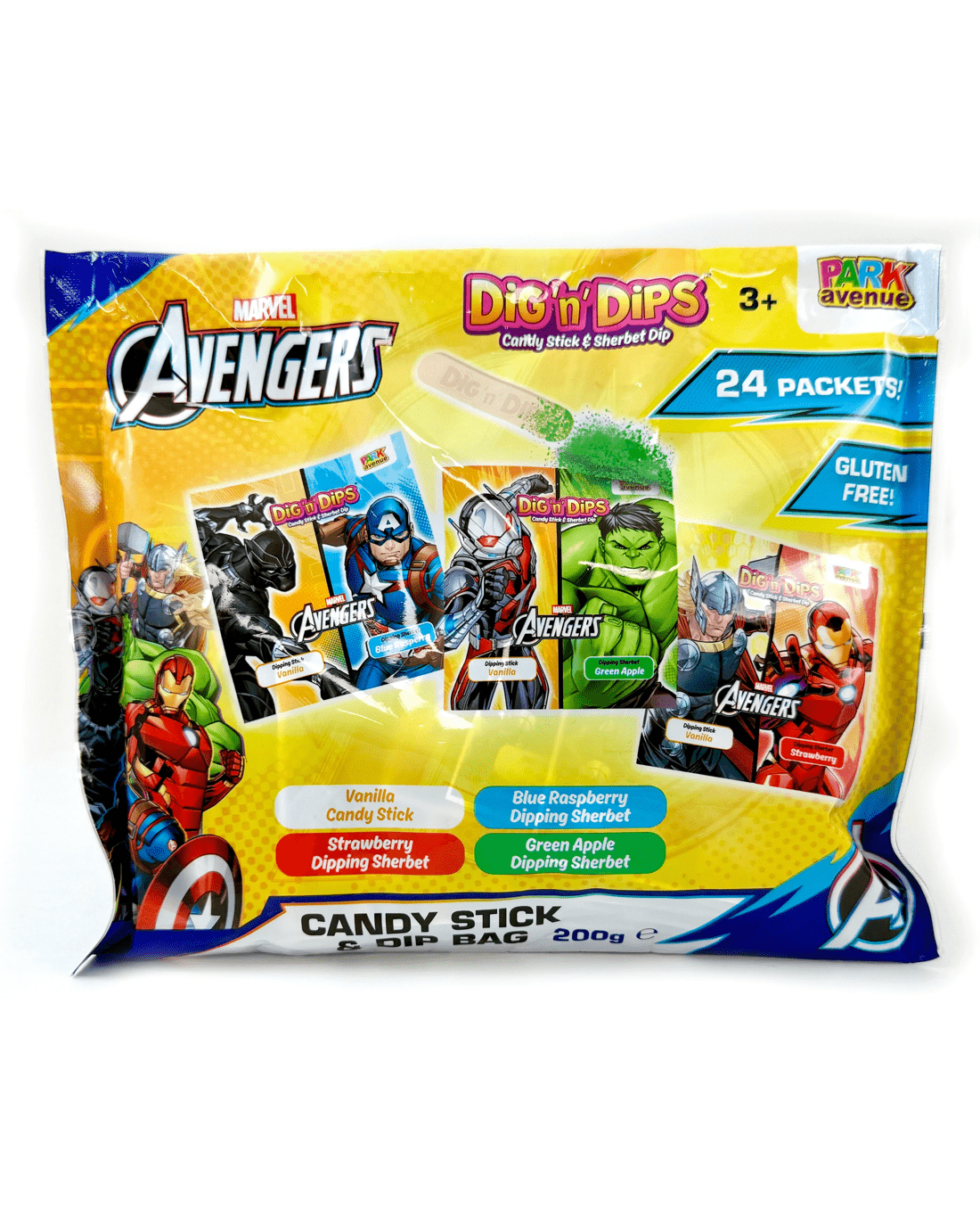 Park Avenue Marvel Avengers 24 Pack Dig n' Dips Candy Stick & Dip Bag 200g