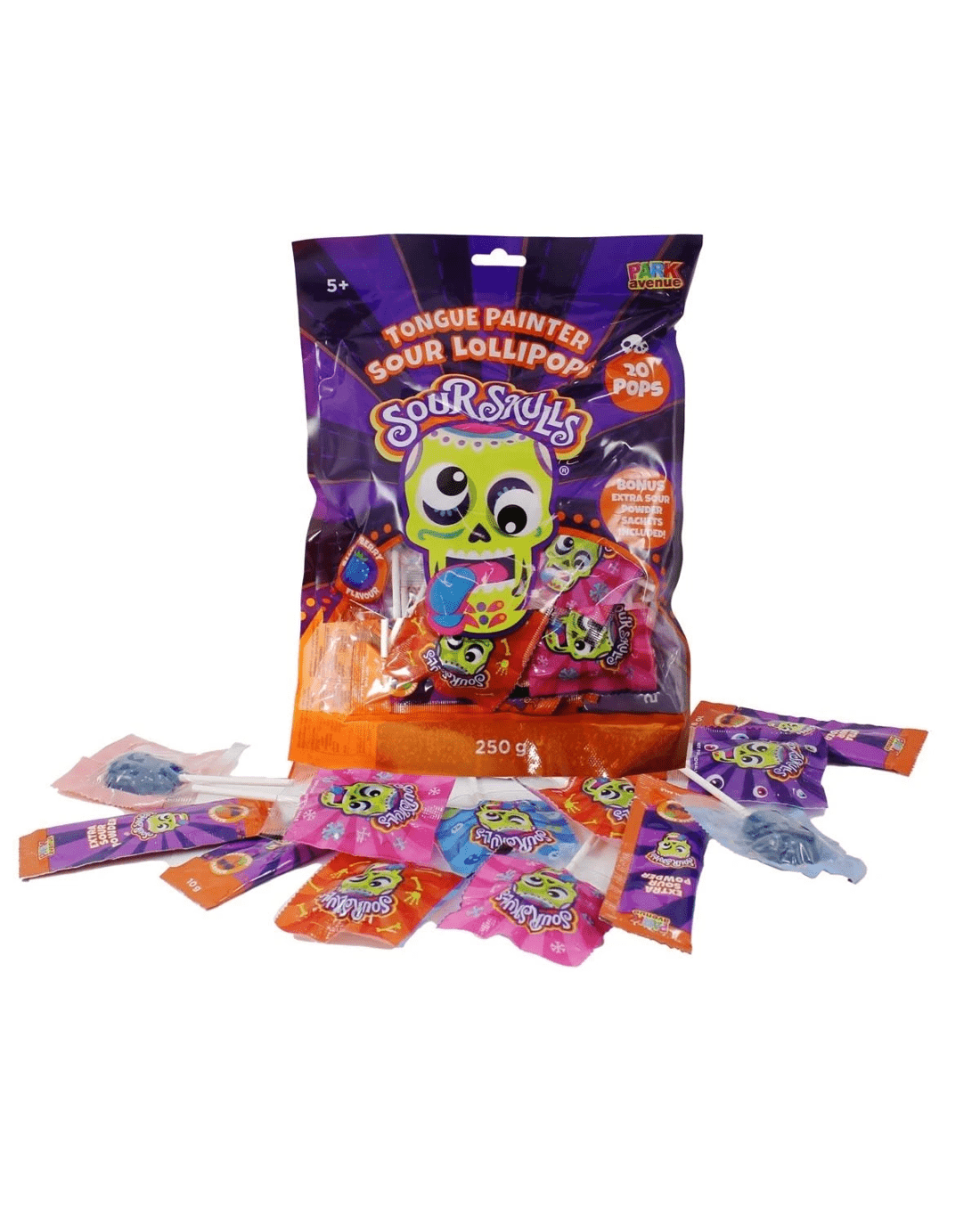 Park Avenue Sour Skulls Tongue Painter Sour Lollipops 250g