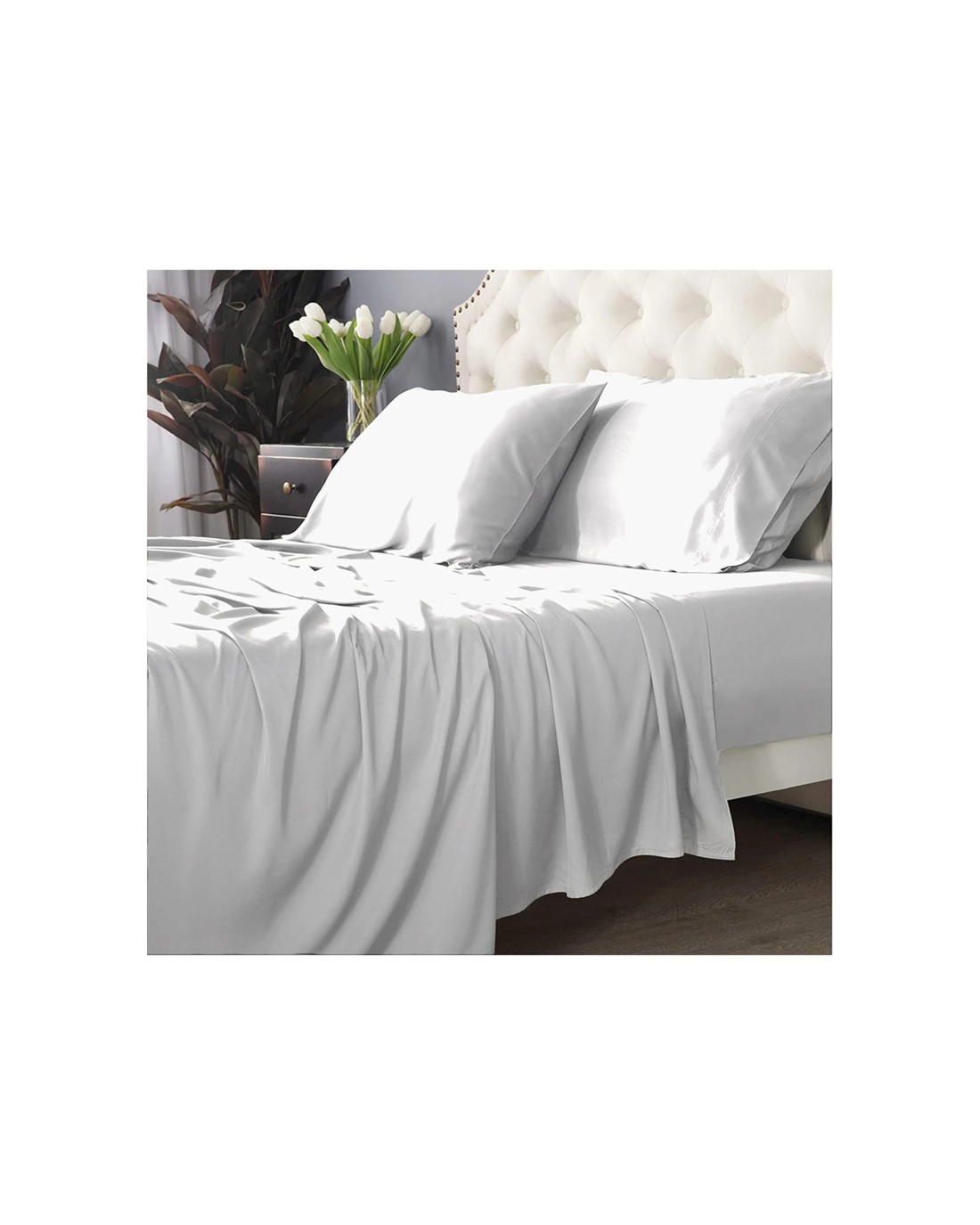 The Park Avenue Split Queen Fitted Sheet Set with Pillowcases in white is designed for a comfortable and stylish sleep experience. Made from a high-quality bamboo cotton blend, this sheet set offers a naturally silky smooth feel that enhances your bedding comfort.