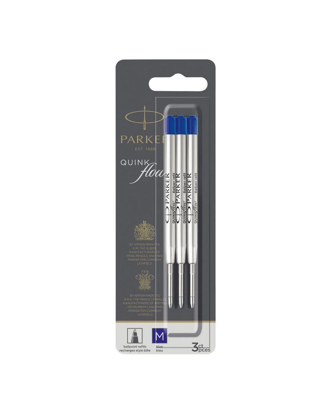 The Parker Ballpoint Refill is designed especially for your Parker Pen. It contains blue ink and has a medium ballpoint tip for added control of writing. This pack comes with 3 quickflow refills so you can keep using your favourite pen and experience your smooth writing tool like never before.