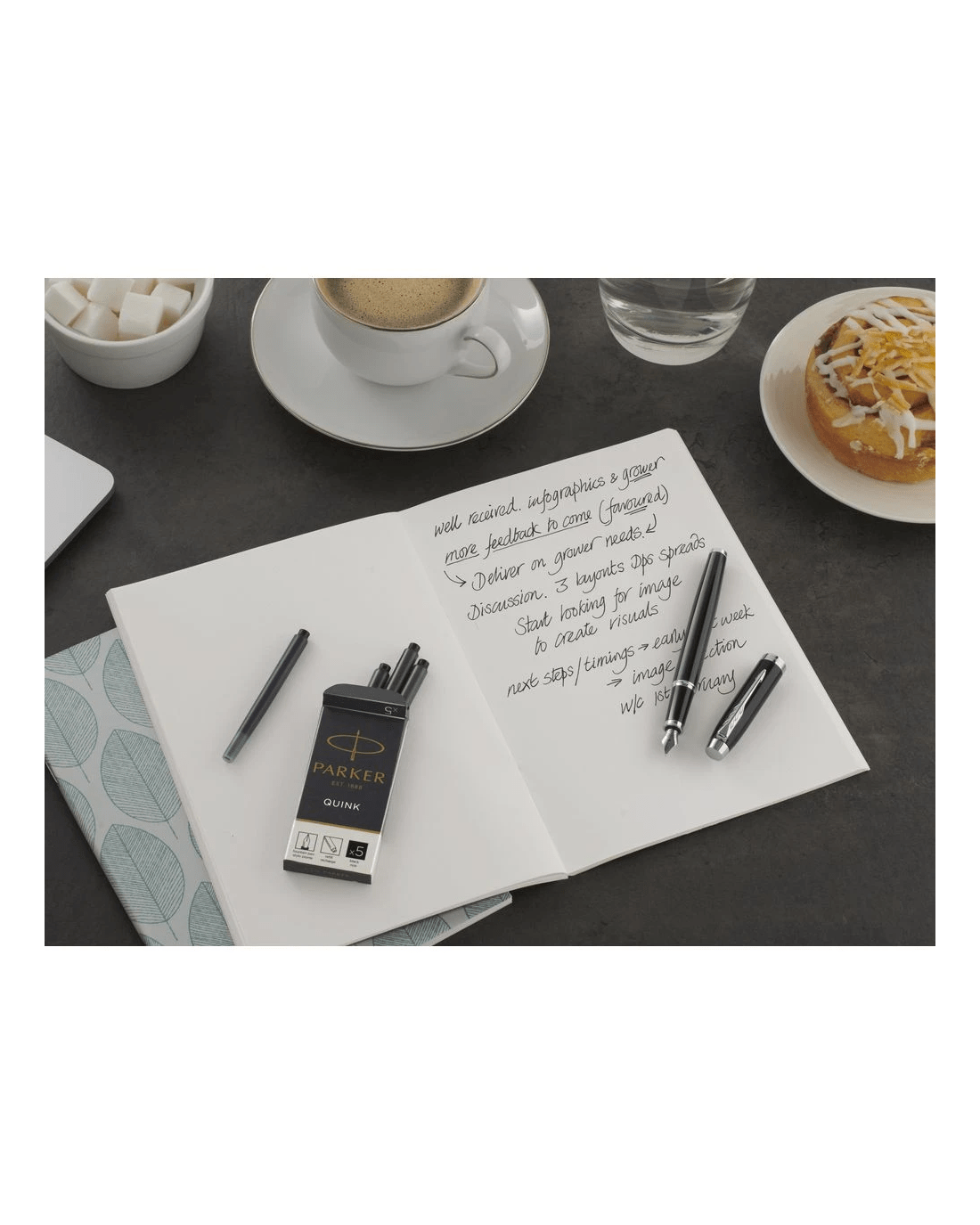 These Parker Quink Ink Cartridges have been designed for optimal writing performance. They will fit in Parker fountain pen models. There are 5 black ink cartridges in this pack.