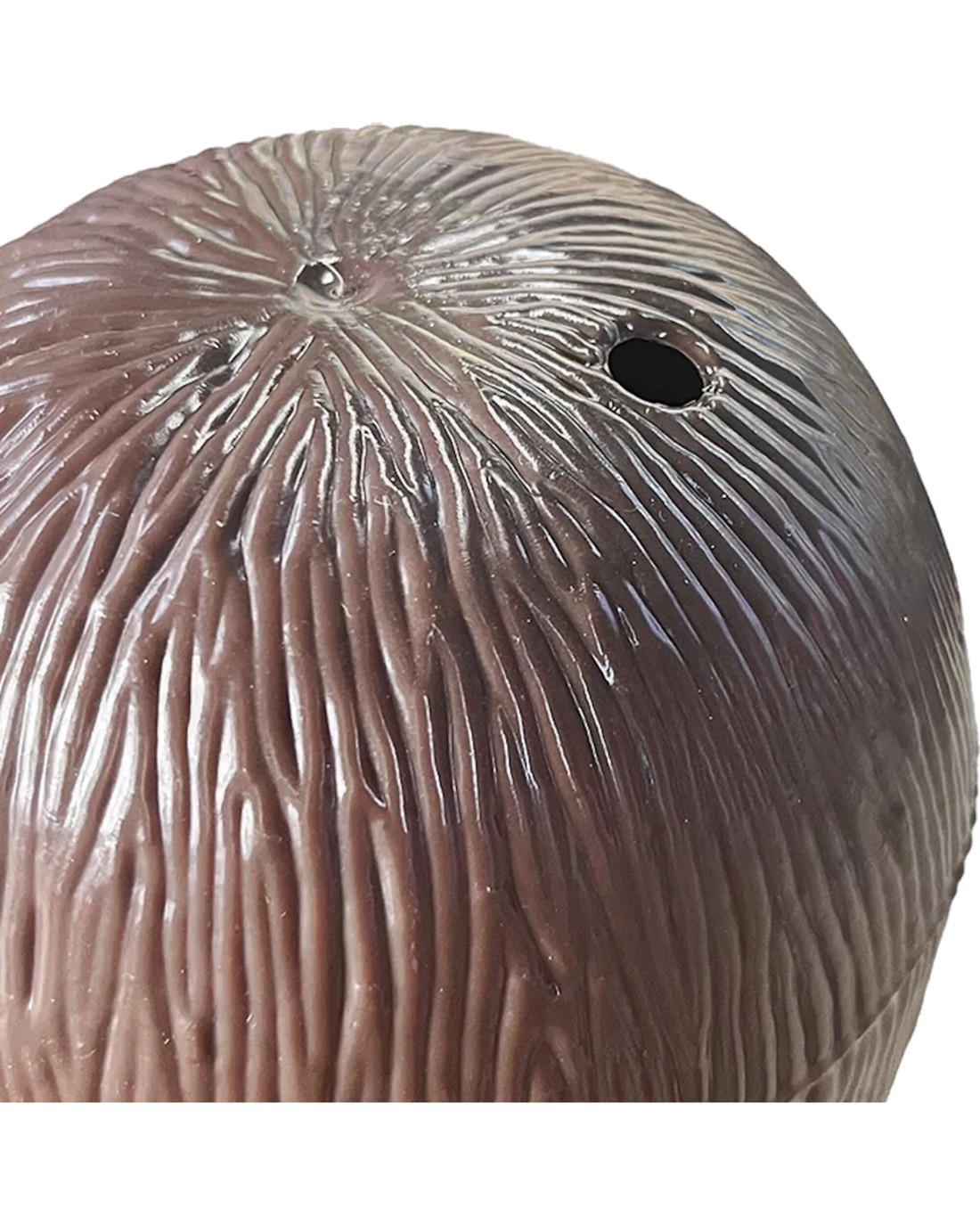 Brown Novelty Coconut Cup. Plastic Coconut-shaped cup for tropical drinks.