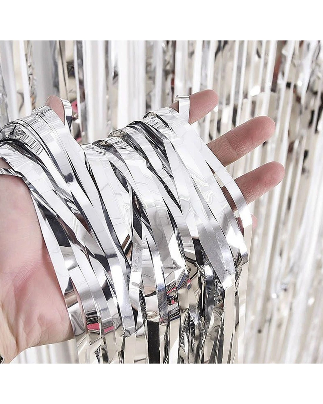 Sold by Discount Party SuppliesMetallic Silver Foil Door Backdrop Curtain 100cm x 200cm - Silver