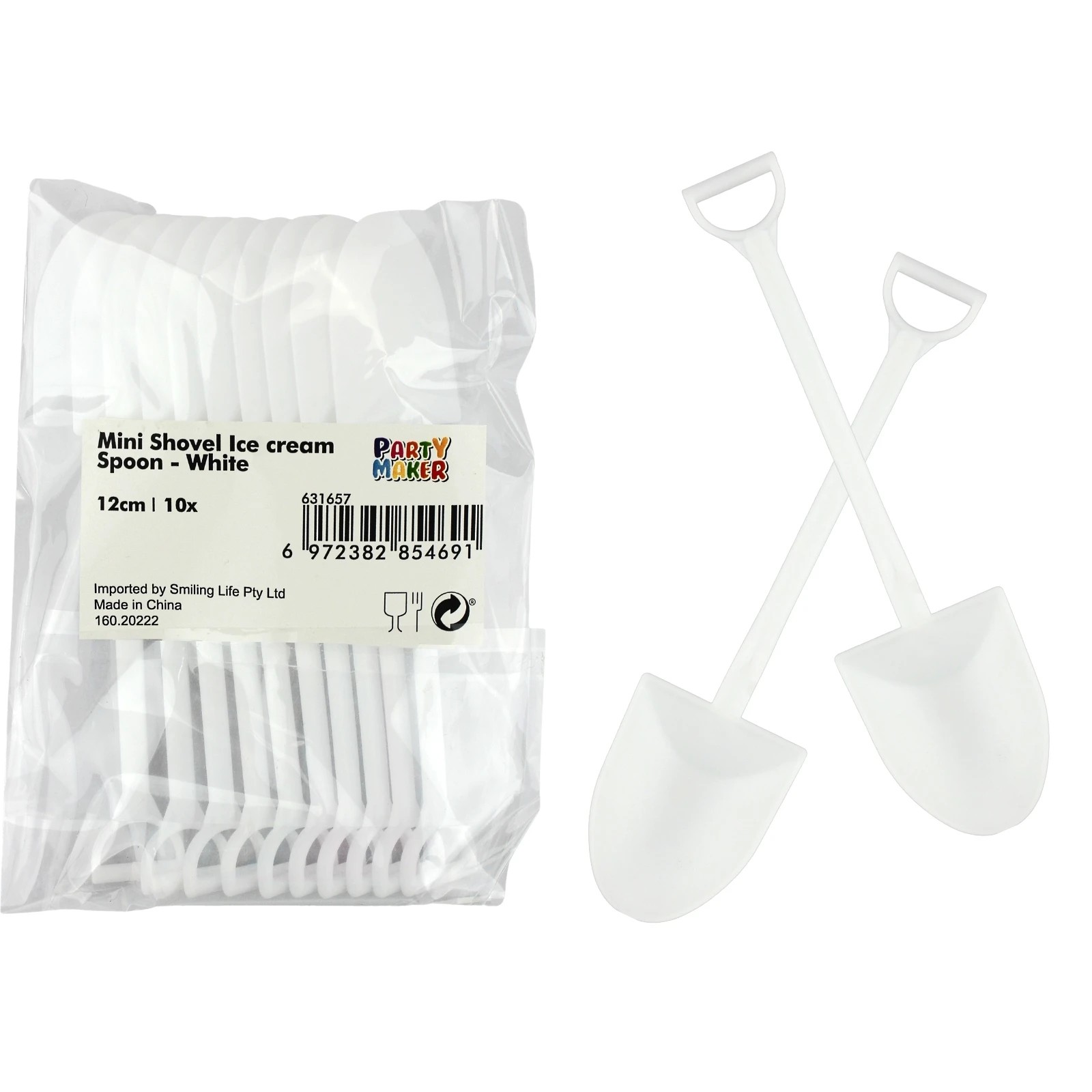 Party Maker Mini White Construction Shovel Spoons (Pack of 10)