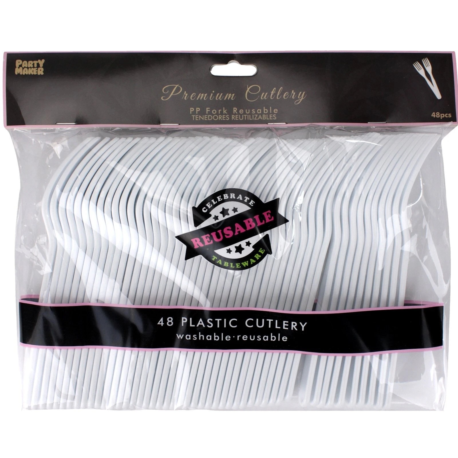 Party Maker White Reusable Premium Plastic Forks (Pack of 48)