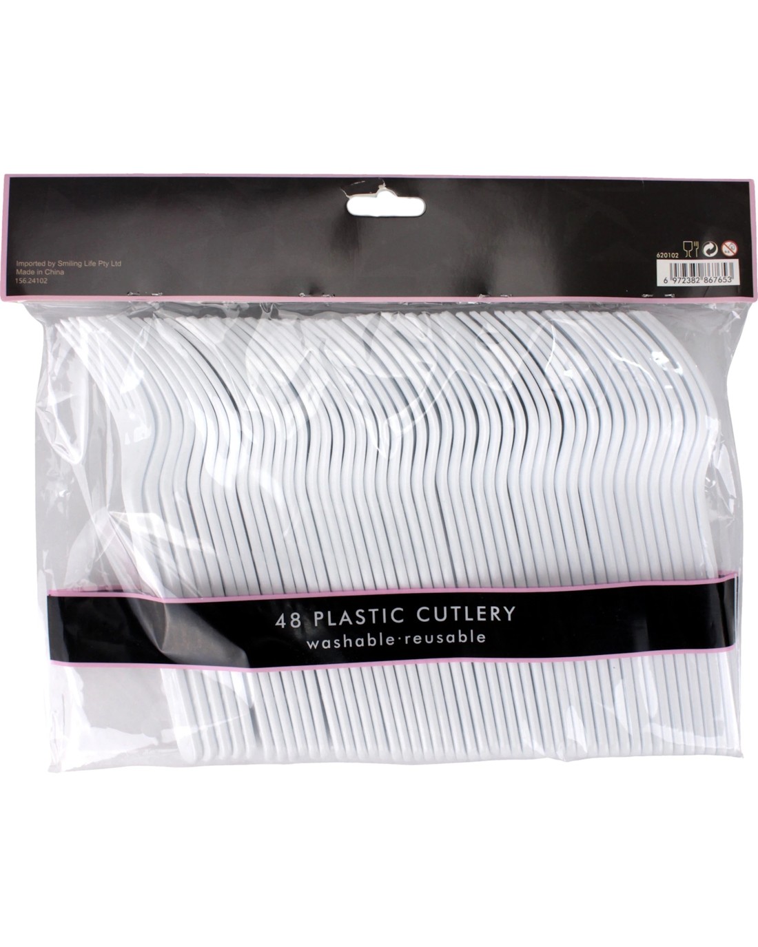 Pack of 48 White Reusable Premium Plastic Forks. Cutlery for any party or event.