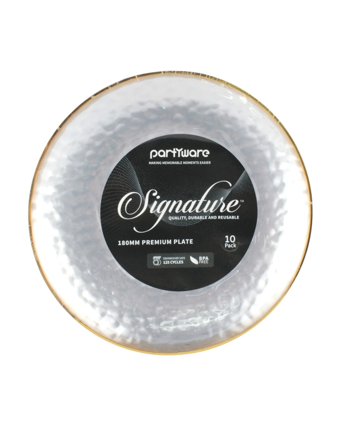 Sold by Discount Party SuppliesPartyware Clear Dimple With Gold Trim Plastic Plates 18cm Pack of 10 - Clear, Gold