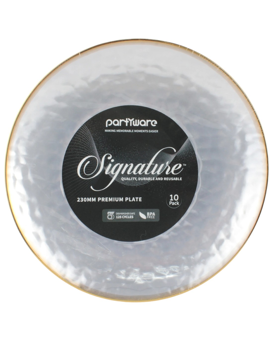 Sold by Discount Party SuppliesPartyware Clear Dimple With Gold Trim Plastic Plates 23cm Pack of 10 - Clear, Gold