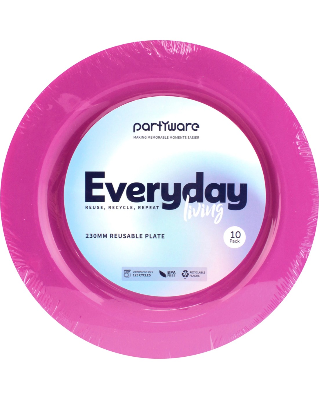 Sold by Discount Party SuppliesPartyware Fuchsia Pink 23cm Plastic Reusable Plates Pack of 10 - Fuchsia Pink
