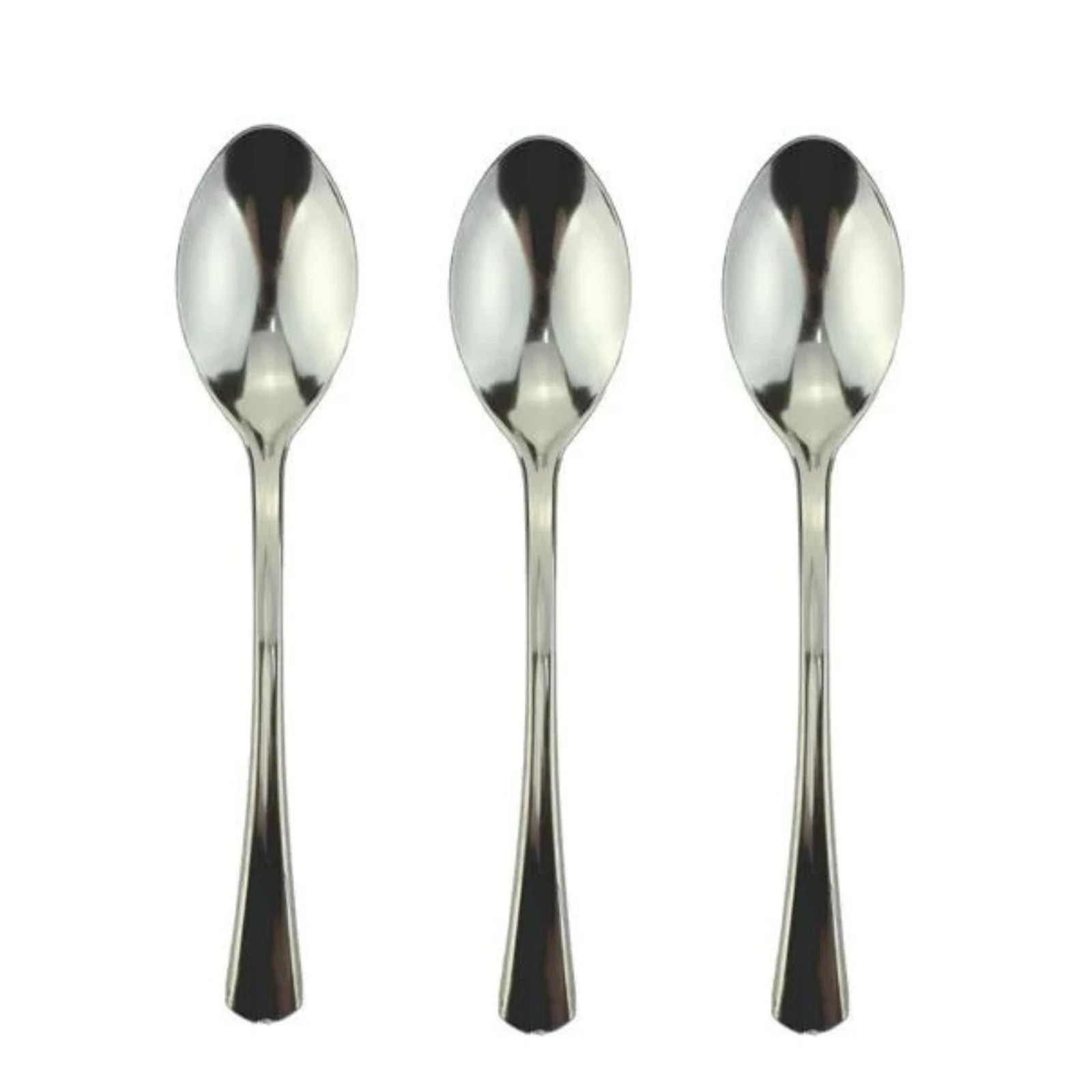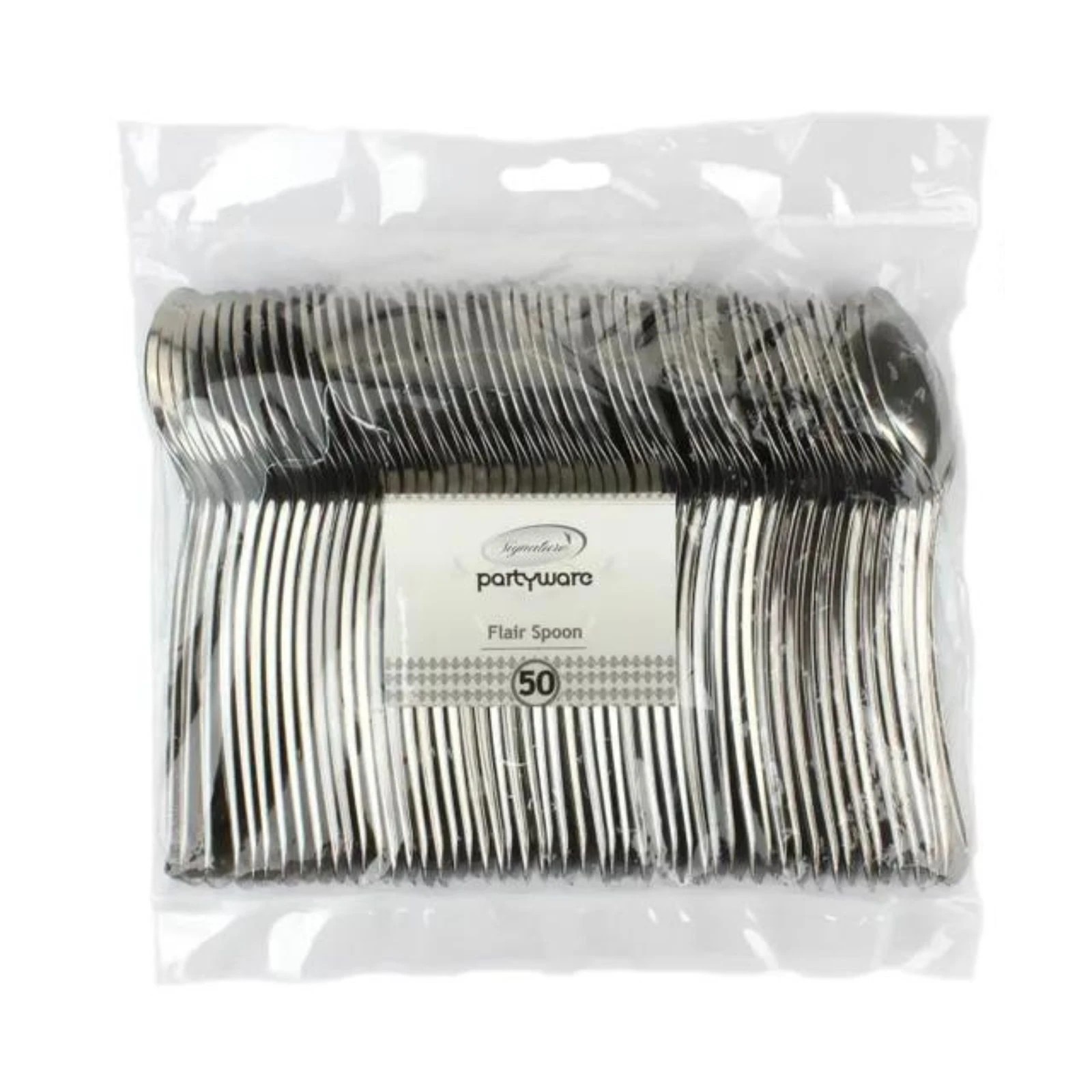 Partyware Stainless Steel Look Flair Reusable Plastic Spoons (Pack of 50)