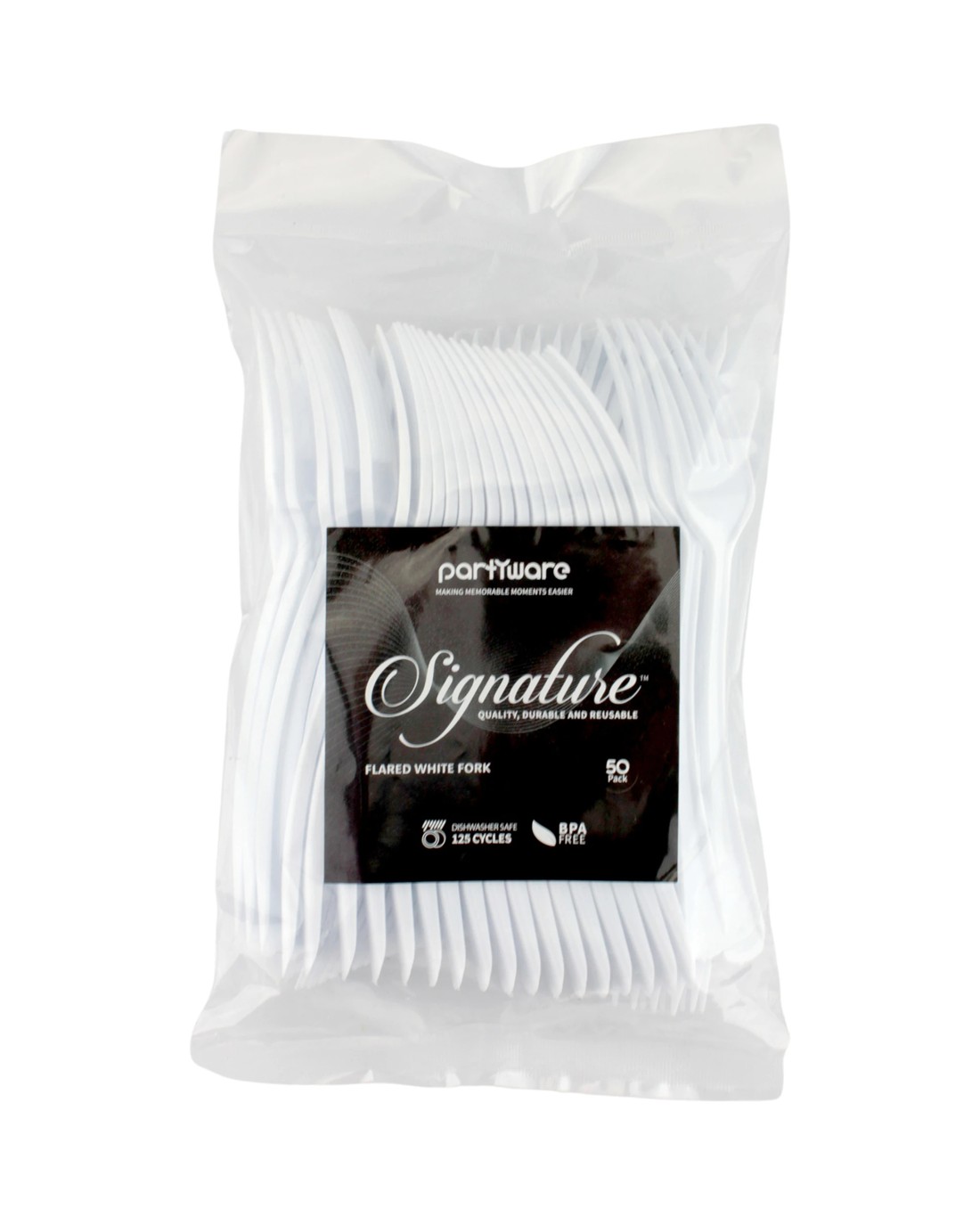 Partyware White Flair Reusable Plastic Forks Pack of 50