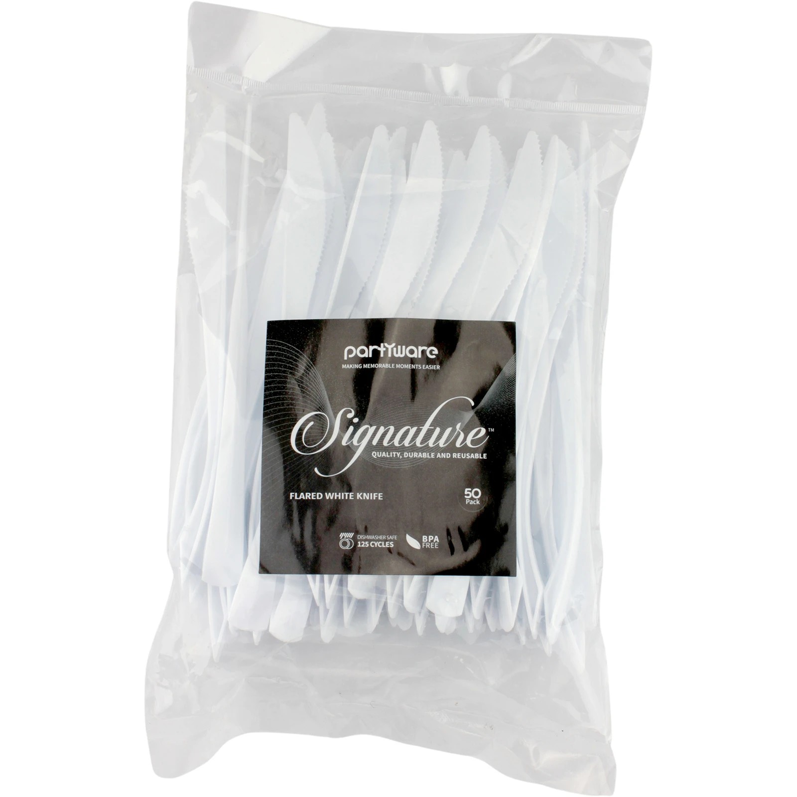 Partyware White Flair Reusable Plastic Knives (Pack of 50)