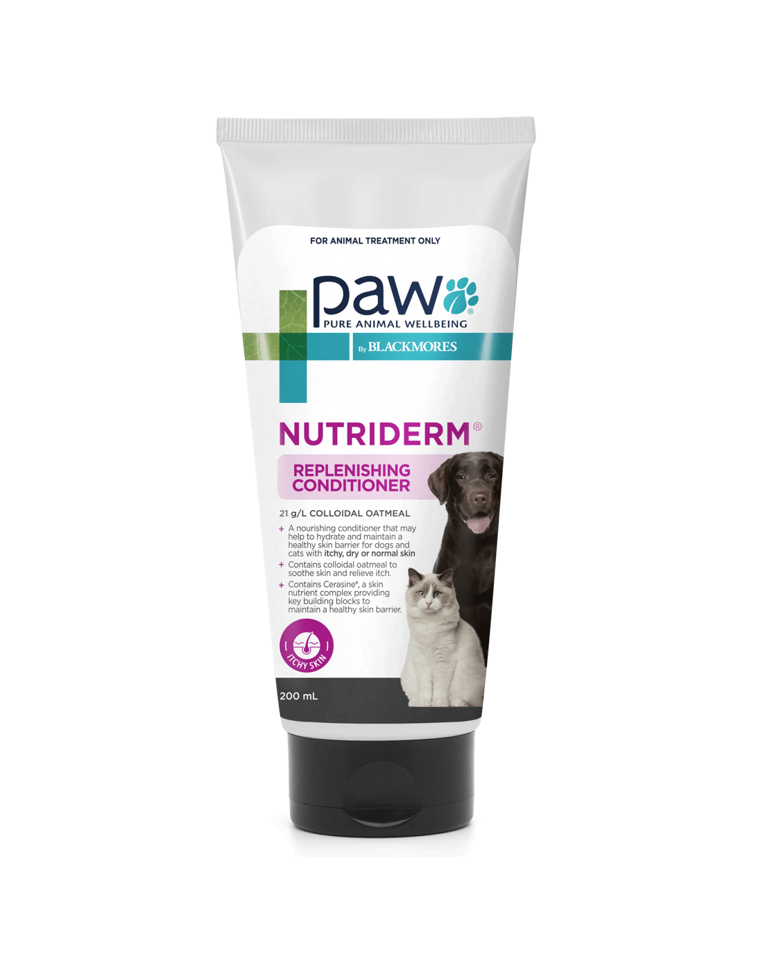 PAW NutriDerm Replenishing Conditioner is an advanced, nourishing conditioner designed to moisturise your pet’s skin and leave their coat silky, soft, and fresh. Formulated with Cerasine® skin nutrient complex, it’s ideal for dogs and cats with normal, dry, or itchy skin.