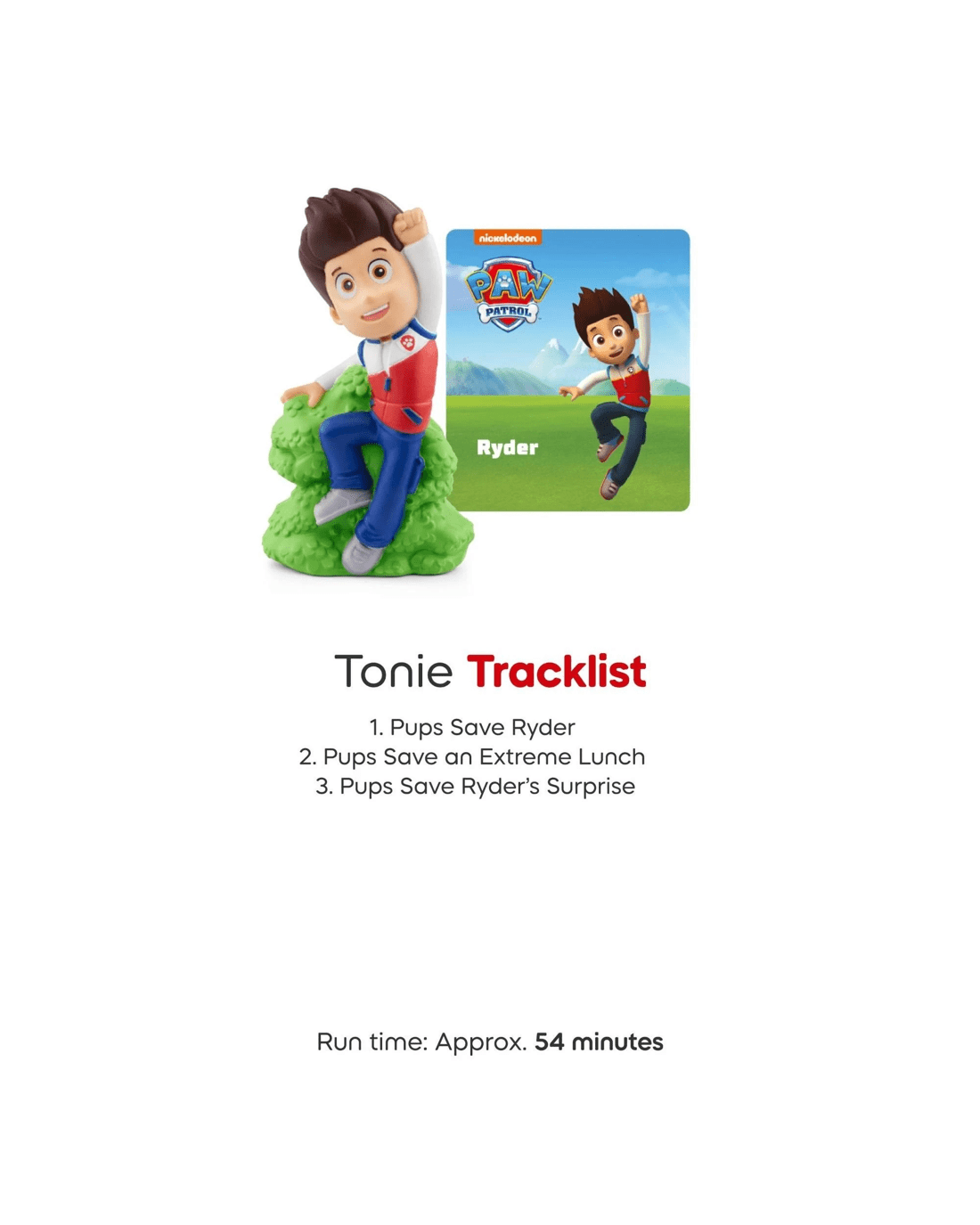 PAW Patrol, to the Toniebox! Ryder’s calling all heroes big and small for three epic adventures packed with daring rescues, wild twists and top notch teamwork in Adventure Bay.