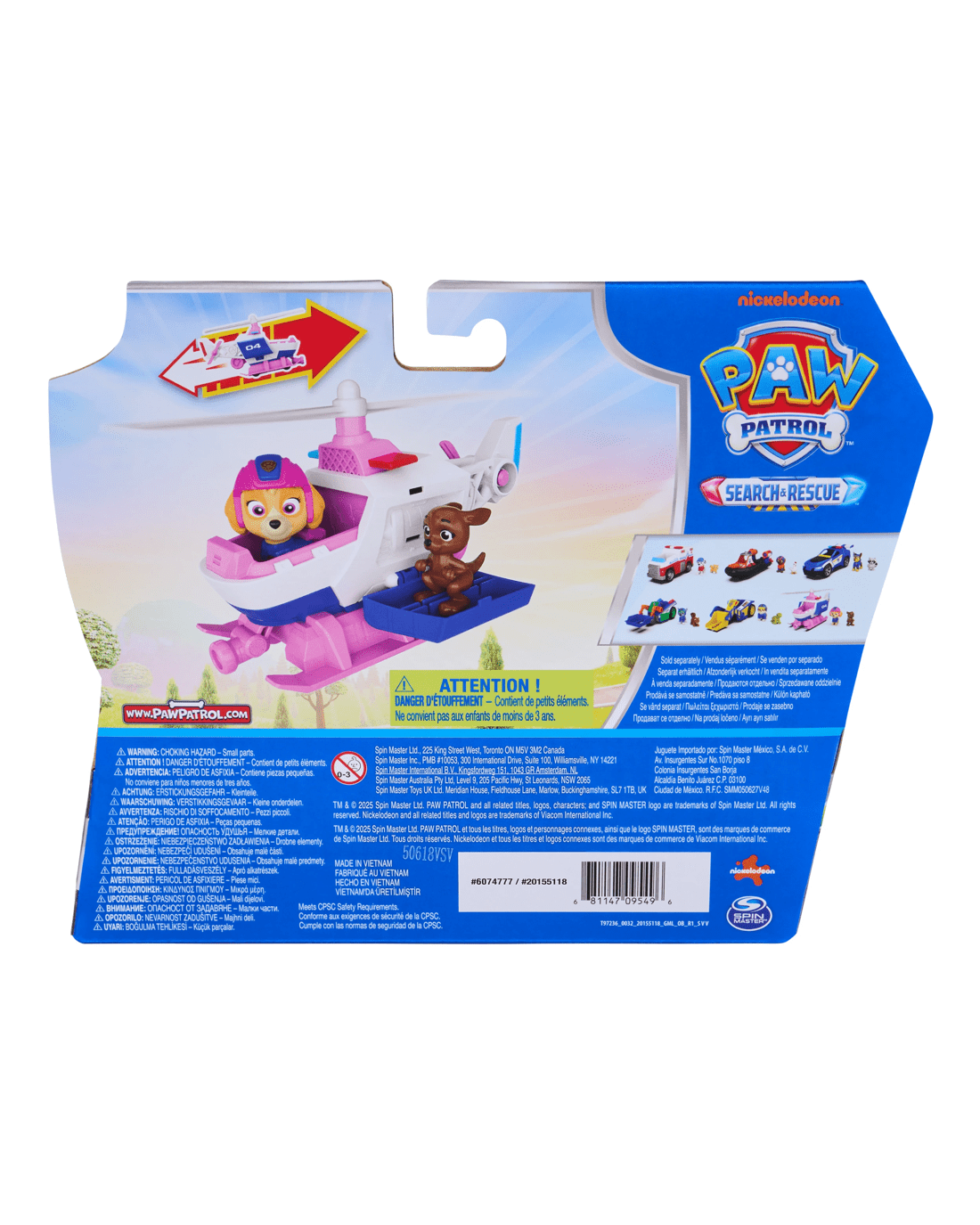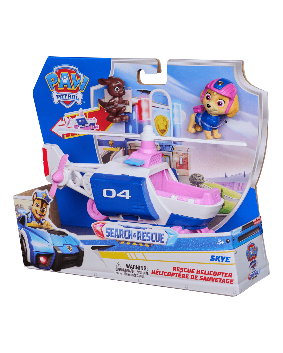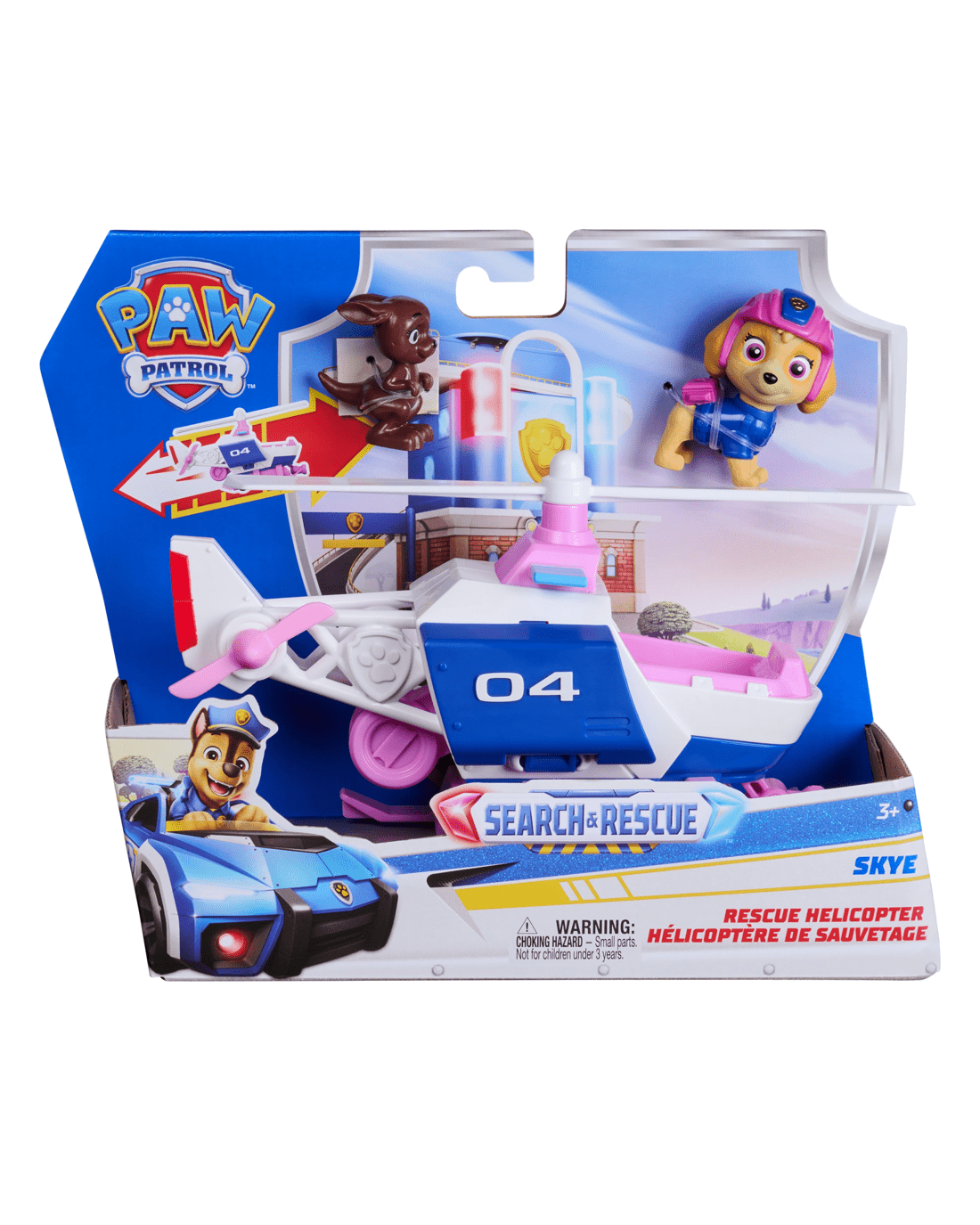 Bring home the exciting world of PAW Patrol with the Seach and Rescue: Skye Rescue Helicopter! This action-packed set includes a 15cm toy helicopter with a real working propeller and two figures including Skye, standing over 5cm tall in her Search and Rescue uniform, ready to save the day. Kids can place Skye and the Kangaroo in the air vehicle, then pull back and launch forward for thrilling element to every mission. With genuine PAW Patrol styling, this toy looks just like the vehicles from the show, inspiring kids to embark on their own adventures. These PAW Patrol learning toys are PAWsome for a birthday, Christmas or any holiday. For even more fun, combine with the Lift 'n' Repair playset and six different Search and Rescue figures and vehicles, so the excitement never ends (each sold separately). Relive cherished moments from past PAW Patrol seasons, like Fire Rescue and PAW Patrol Movie or create new adventures with a PAW Patrol tower, individual PAW Patrol action figures and their PAW Patrol vehicles, for turbo-charged adventures.
