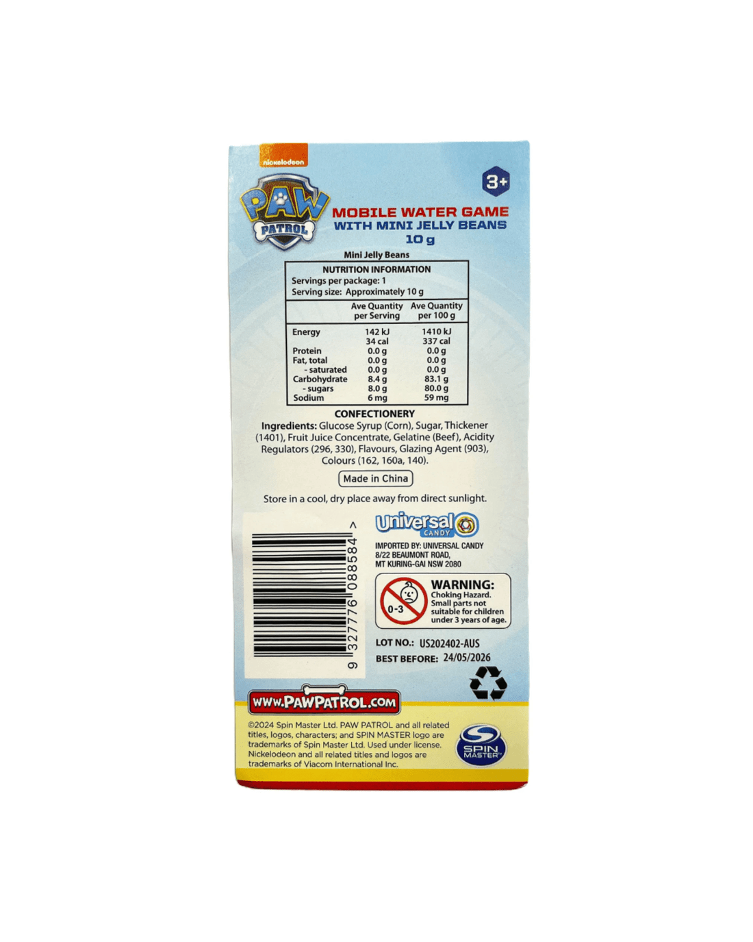 • Includes only 1 x PAW Patrol Water Game 10g