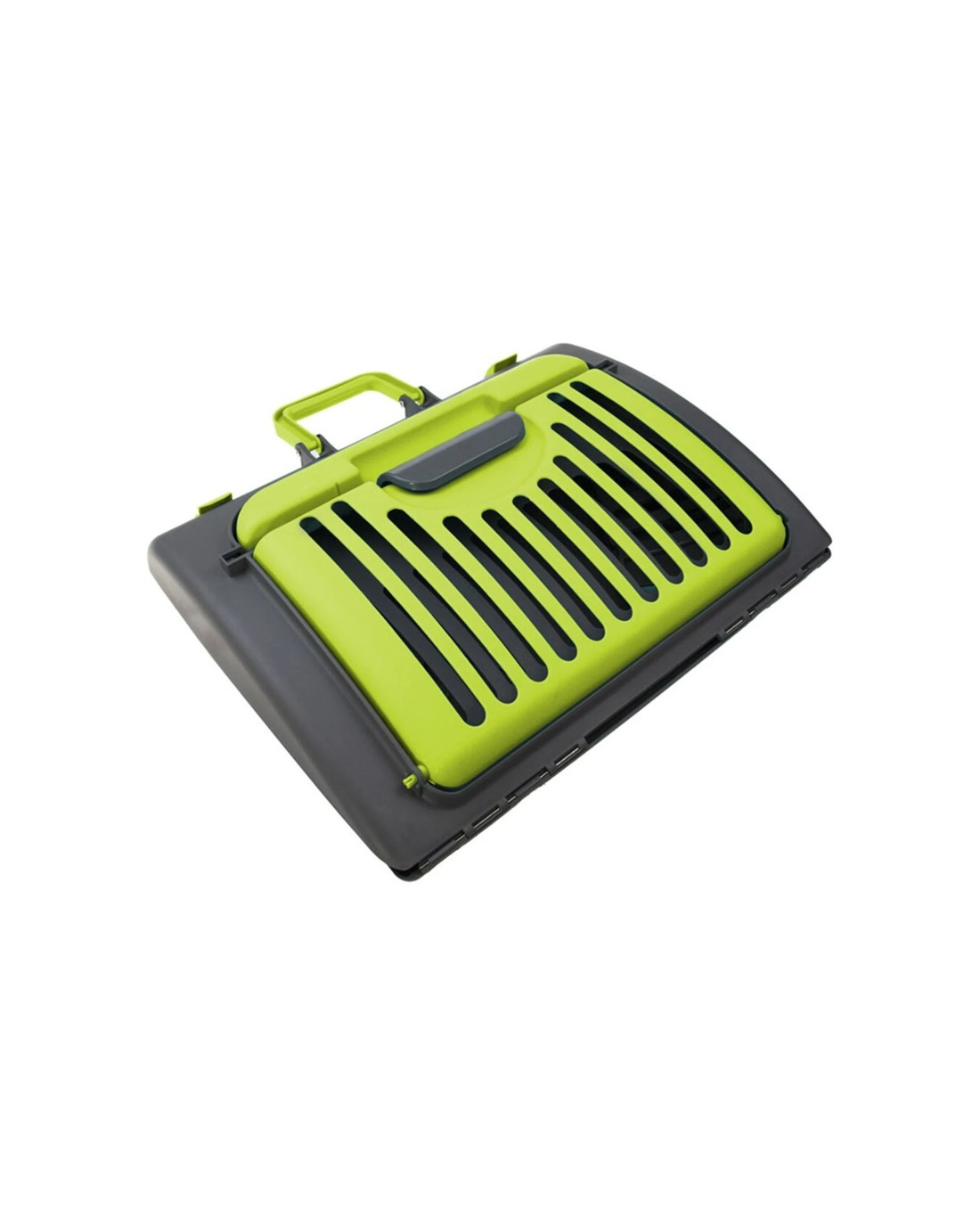 Design: Rectangular shape with ventilation slats on sides and front