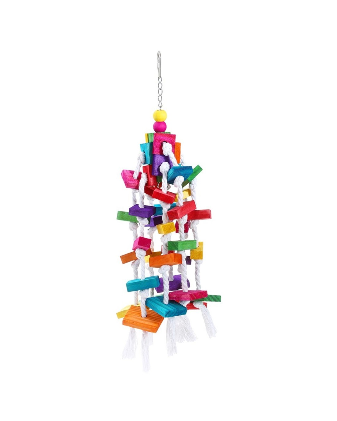 This interactive toy features a knotted rope and colourful wooden blocks that attract your bird's attention. Its sturdy construction ensures long-lasting use, making it a safe and reliable choice for your feathered friend.