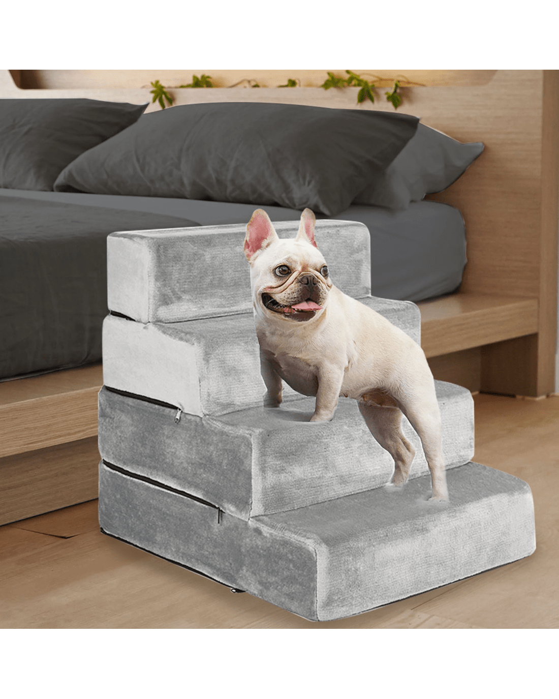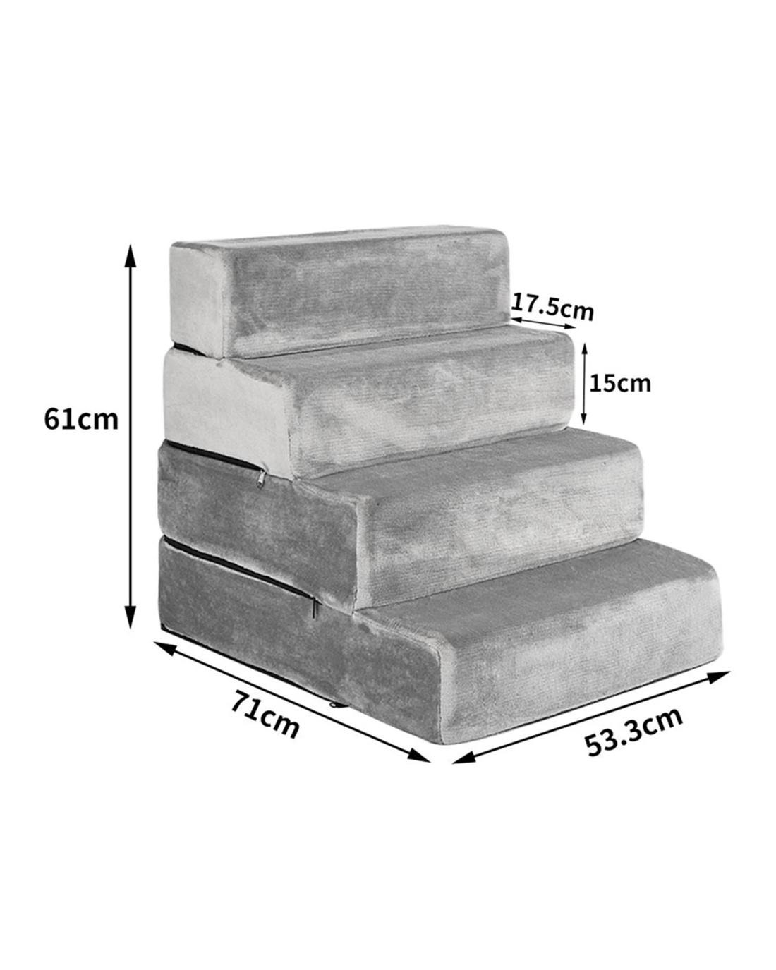 Adjust to height your pet desires. With its unique foam design, adjust easily to the height you may desire. Portable and flexible, helps you and your pet. To improve its comfort, built-in high-density foam is provided. Which makes it very much reliable and durable. Anti-slip bottom provided on the steps ensures greater stability for your pet to climb. Clean it simple and easy with its zipper enclosure design. An all-season product for your pet. Ease their pain, ease their worry. For a happy and lovely cuddle.