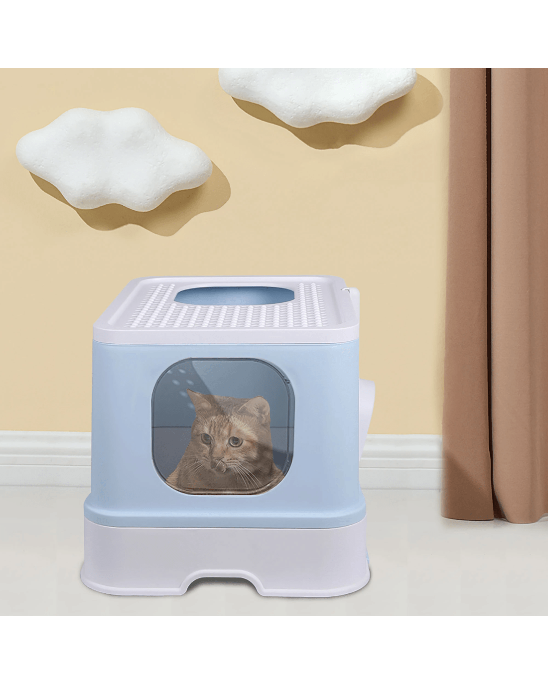 A double-door design effectively avoids litter scatter, making it ideal for homes looking to reduce cleaning time. Convex points on the surface help open up the claws, allowing trapped litter to fall off — helping to prevent skin irritation caused by residual particles. This thoughtfully designed cat litter tray helps maintain paw hygiene.