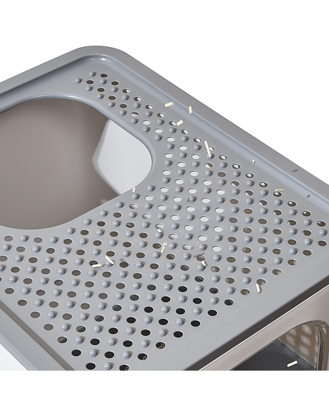 A double-door design effectively avoids litter scatter, making it ideal for homes looking to reduce cleaning time. Convex points on the surface help open up the claws, allowing trapped litter to fall off — helping to prevent skin irritation caused by residual particles. This thoughtfully designed cat litter tray helps maintain paw hygiene.