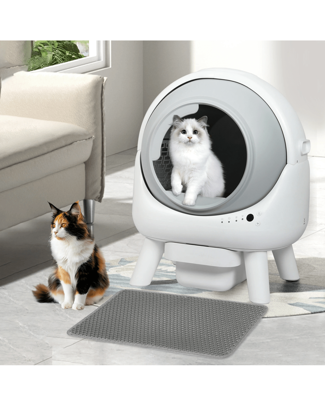 Cleaning is made easy with the anti-tracking mat, which prevents litter from sticking and keeps your floors clean. Simply wash the mat, and you're done. The low-entry design (25cm entrance) suits cats of all sizes, including kittens and seniors (1kg-8kg), while the spherical design prevents litter spillage, saving you litter and maintaining a tidy space.