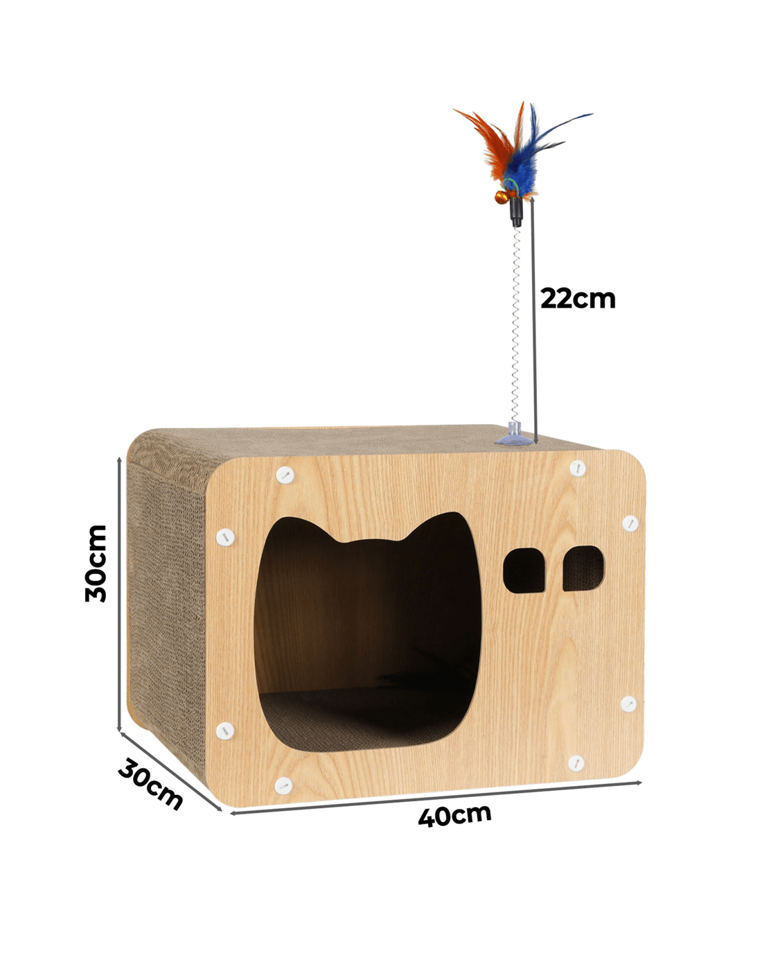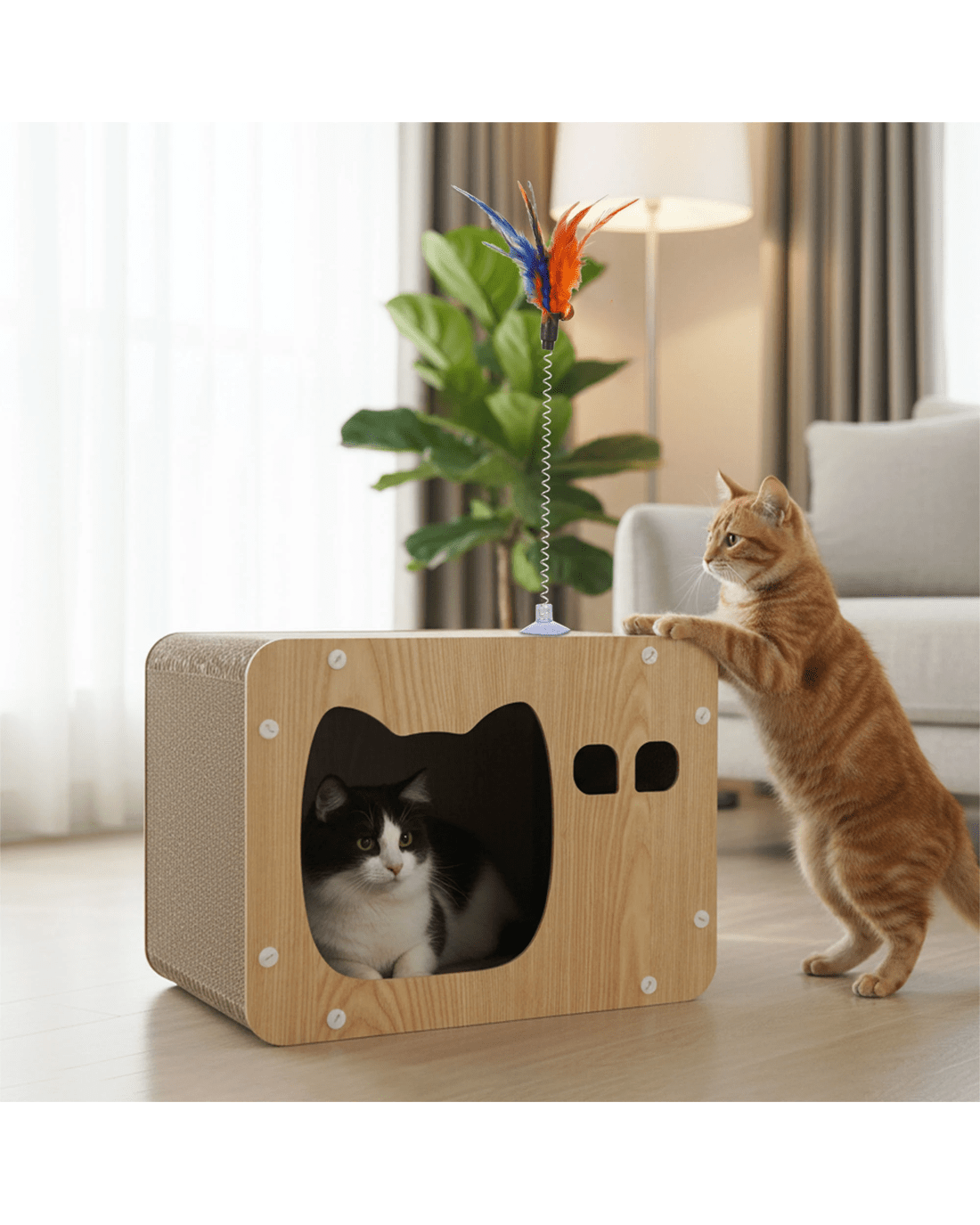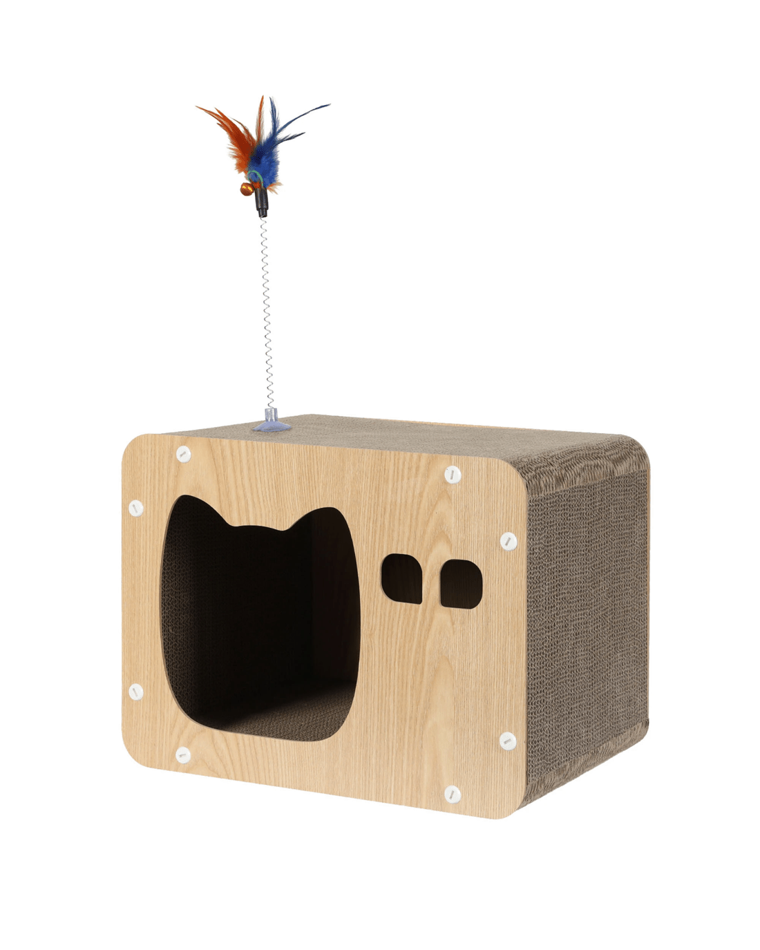 The included interactive spring-loaded mouse toy sparks your cat's hunting instincts for endless fun. Crafted from high-density, non-toxic, and recyclable corrugated cardboard, this durable Pawz Cat Scratching Board is reinforced with a sturdy rubber wood frame for enhanced stability and longevity, clearly outperforming flimsier, single-material alternatives.