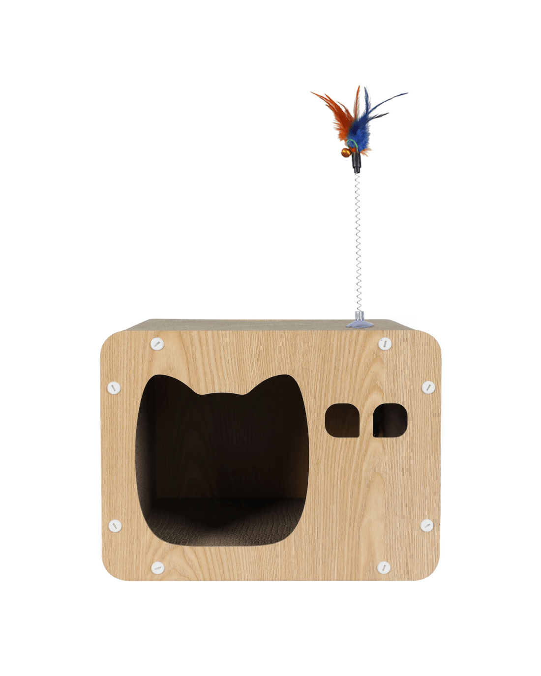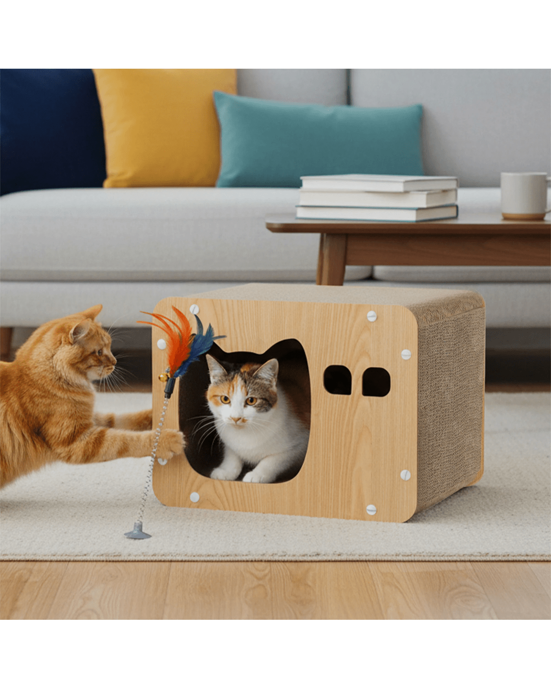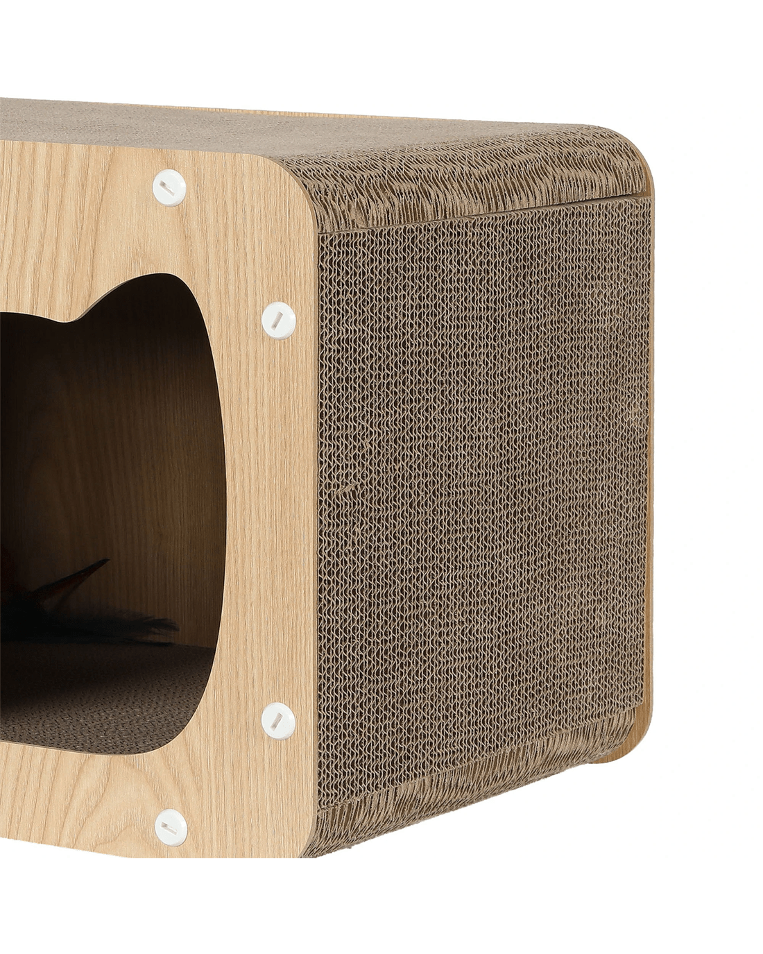The included interactive spring-loaded mouse toy sparks your cat's hunting instincts for endless fun. Crafted from high-density, non-toxic, and recyclable corrugated cardboard, this durable Pawz Cat Scratching Board is reinforced with a sturdy rubber wood frame for enhanced stability and longevity, clearly outperforming flimsier, single-material alternatives.
