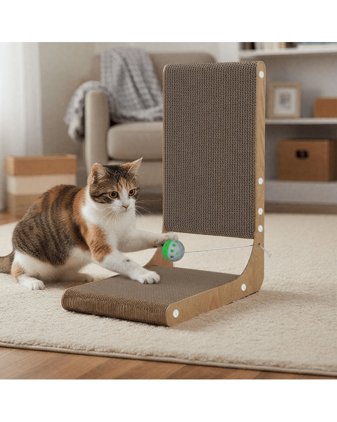 Maximize your space and your cat's happiness with the Pawz L-Shaped Cat Scratching Board. This innovative Cat Scratching Board features a versatile L-shape that can be configured as a vertical scratcher, a horizontal lounging bed, or a cozy nook, effortlessly adapting to any room layout.