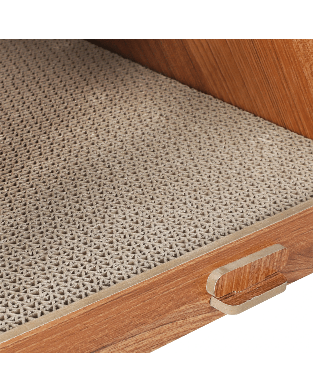 Cats stretch by digging their claws in a scratching. Focus their effort on your cardboard cat scratcher. Engage their paws, legs, and muscles all the way up to their back.