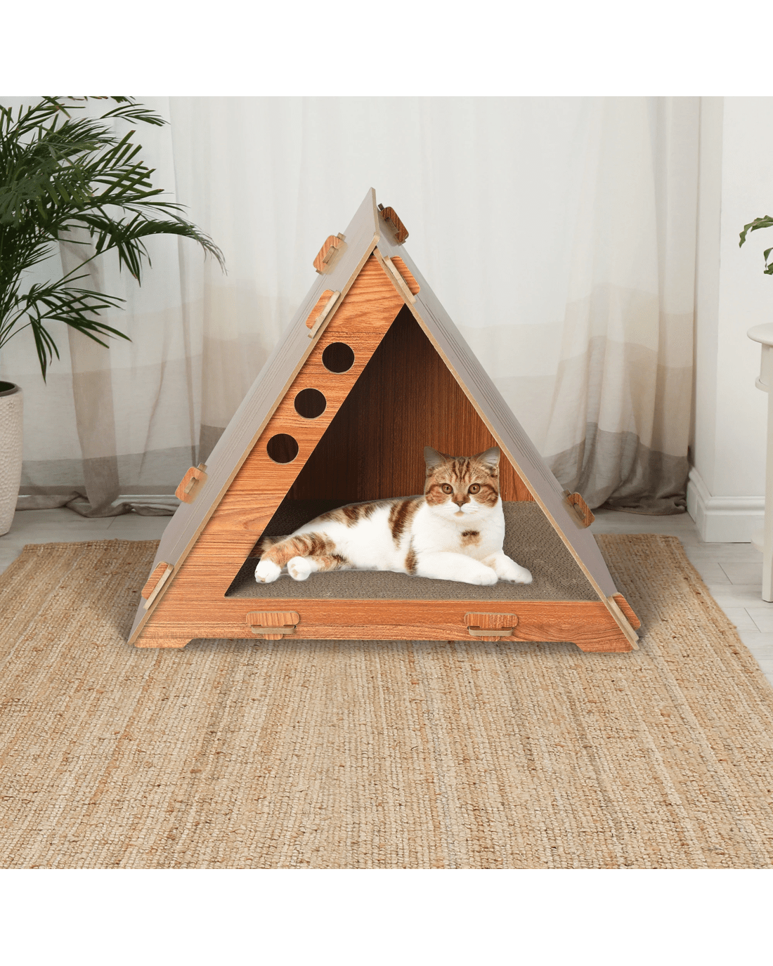 No tools needed. Assemble your cat scratching board with bed together. Just line up all the parts. Push together. Now your cat can investigate their new home.